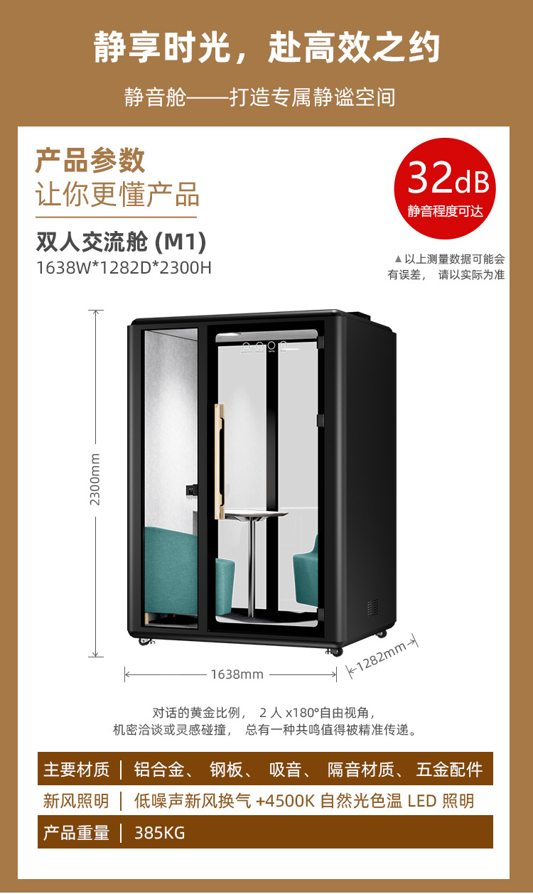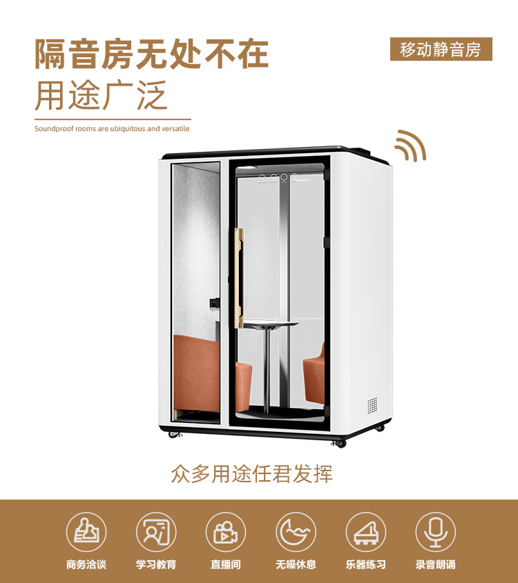 モバイル防音生放送室、屋内オフィス、二人用コミュニケーションルーム、自宅学習防音室、サイレントルーム、工場直販