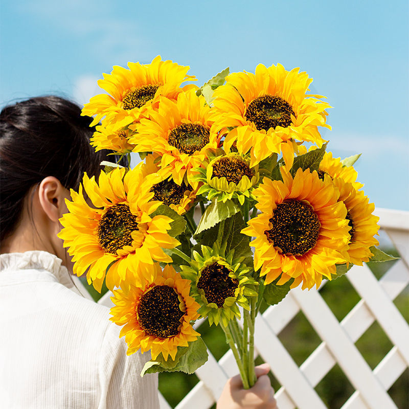 ヒマワリのシミュレーションの花束の置物の乾いた花の手は造花の客間の床の装飾のテレビの棚の食卓の生け花の飾り物を持ちます。