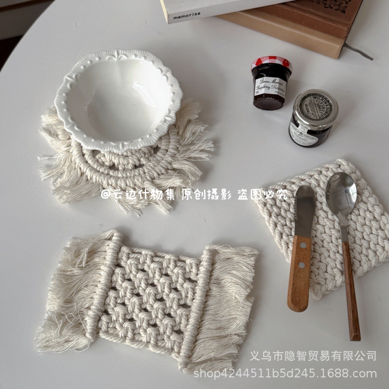 インスタイルの純粋な手作り綿糸織りコースター家庭用高温耐性マット日本製タッセルB&B雰囲気写真小道具