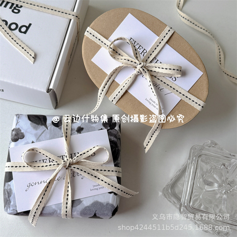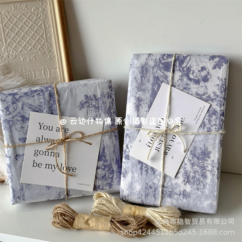 グレーブルー水墨画プレゼント包装紙レトロ系シドニー紙麻縄セット写真下地紙花束包装紙