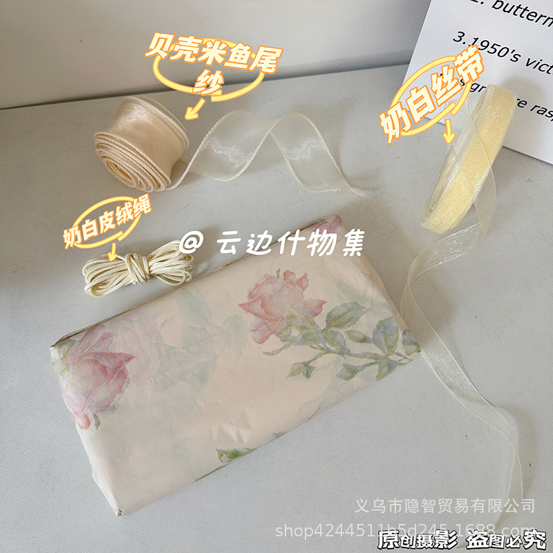小清新ベージュ底バラ包装紙プレゼント包装材料バッグ背景雰囲気優しい花雪梨紙