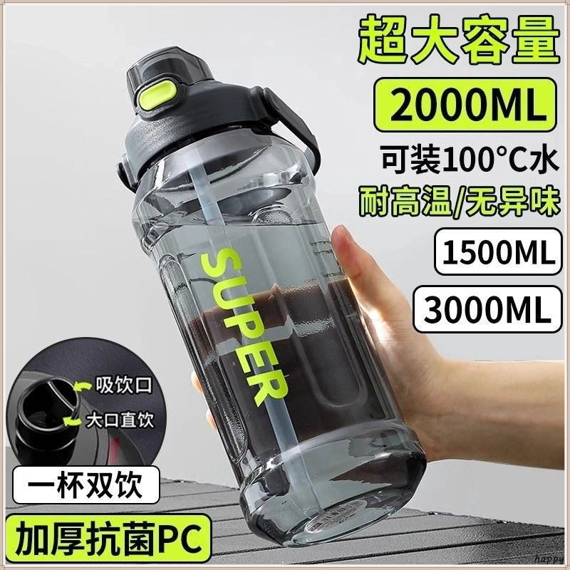 2000ml大容量コップ男女耐高温水筒運動フィットネス屋外宇宙カッププラスチックストローコップ