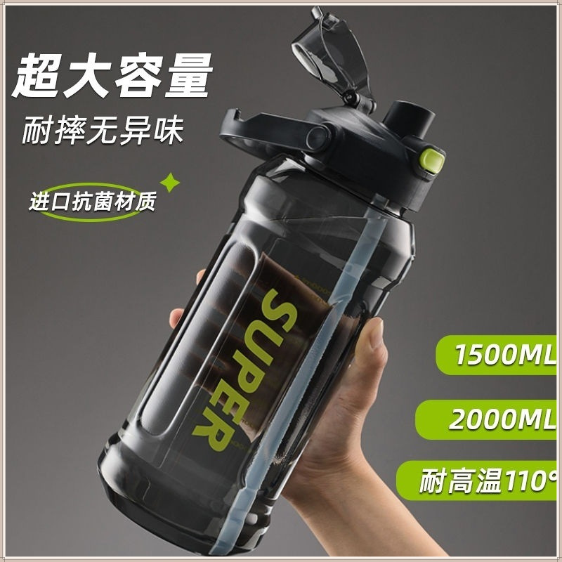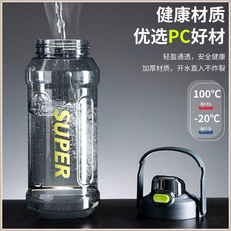 严选2000ml工地塑料太空杯户外健身水杯超大容量学生便携运动水壶