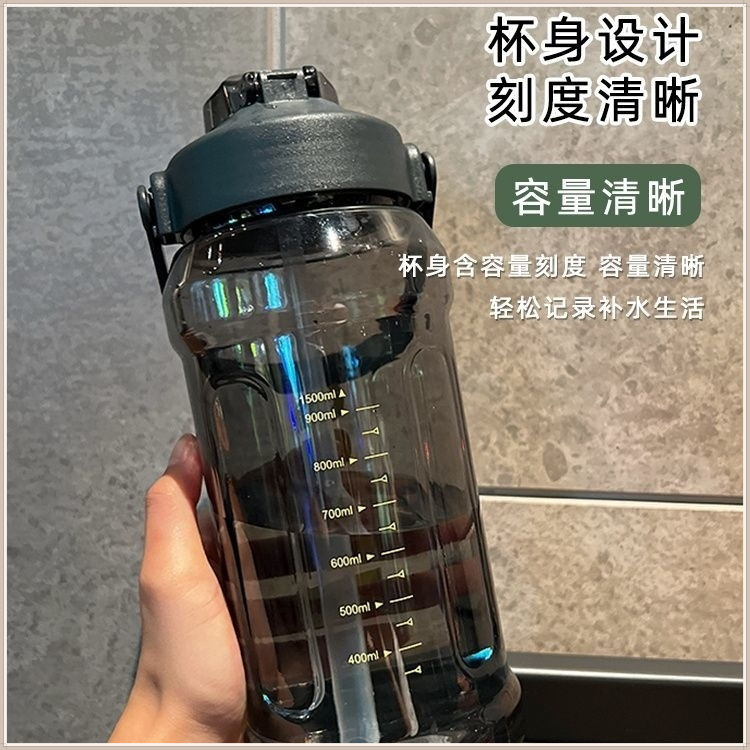 大容量高颜値付きスケール水カップランニングスポーツプラスチック水筒男女屋外フィットネス水ボトルストローカップ