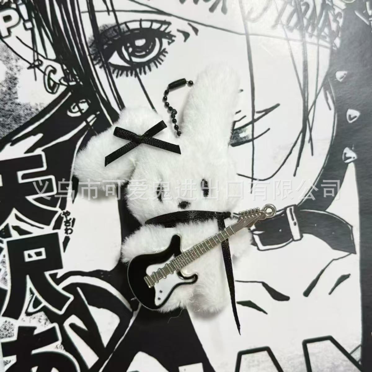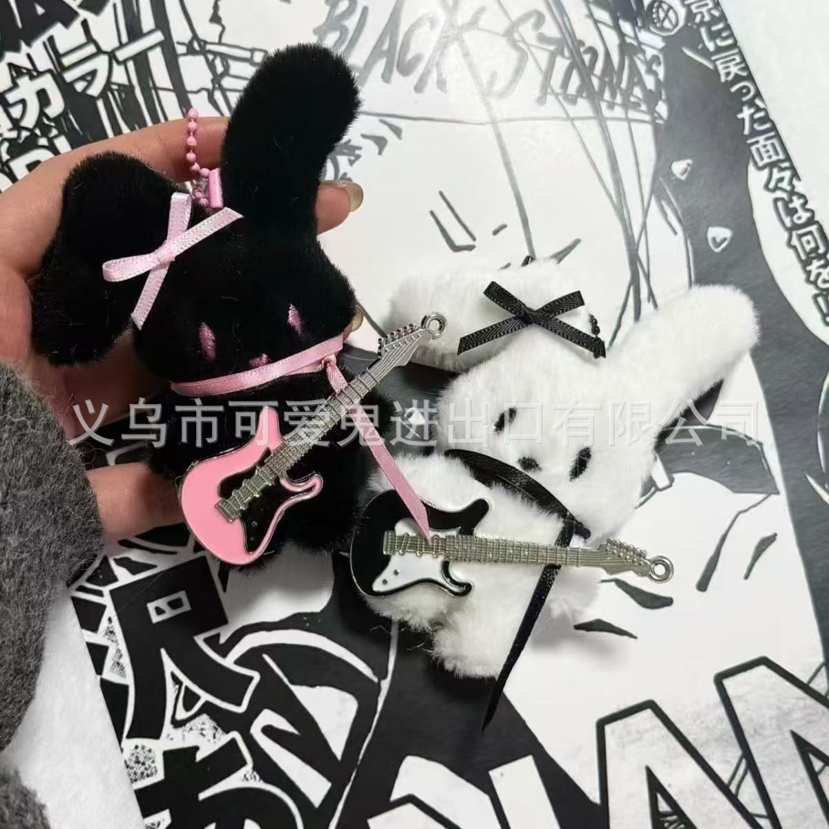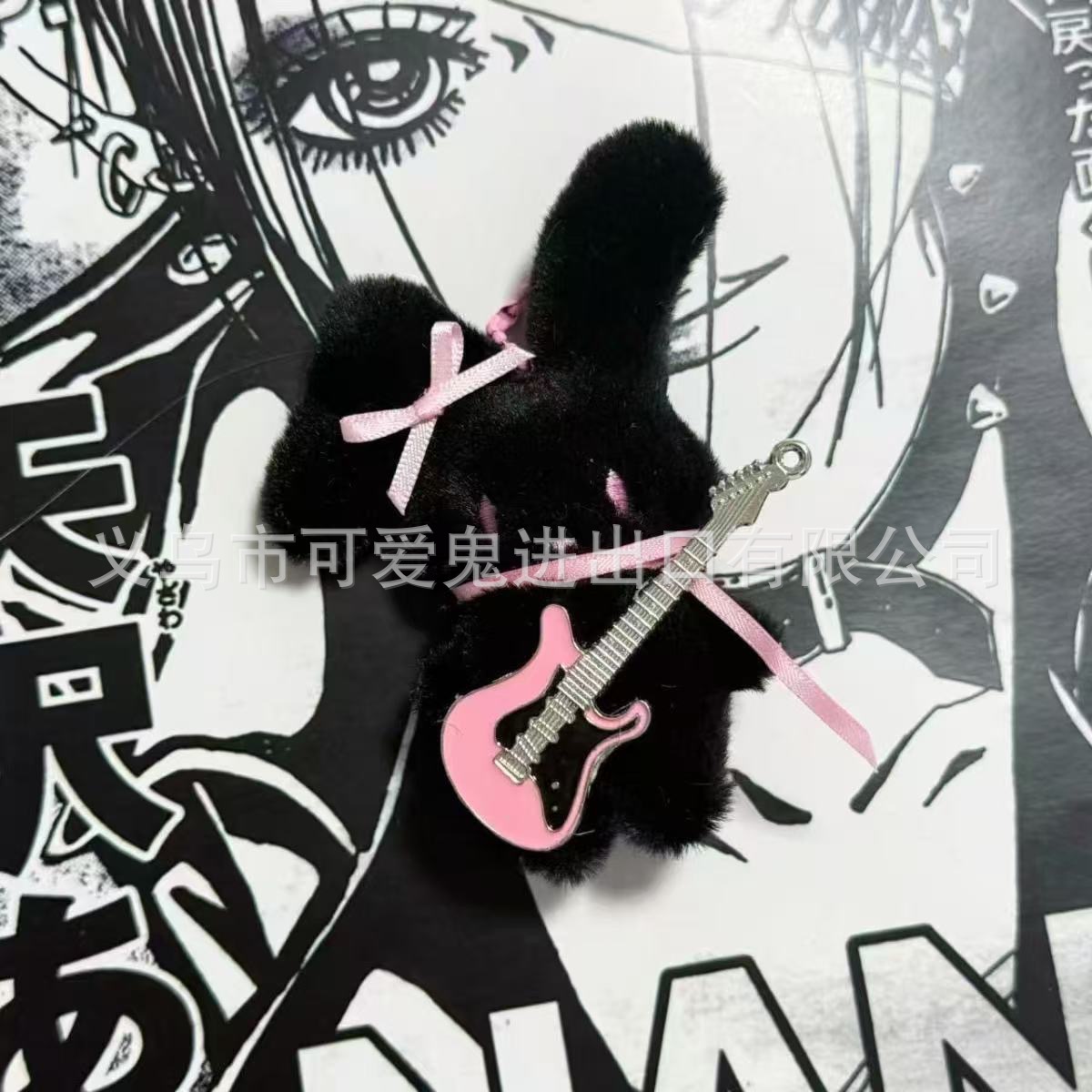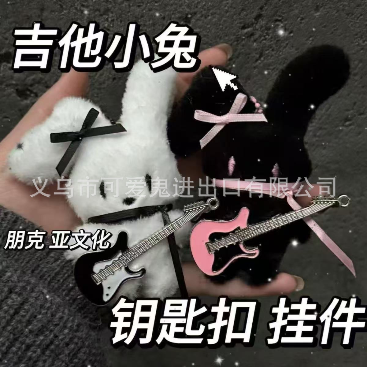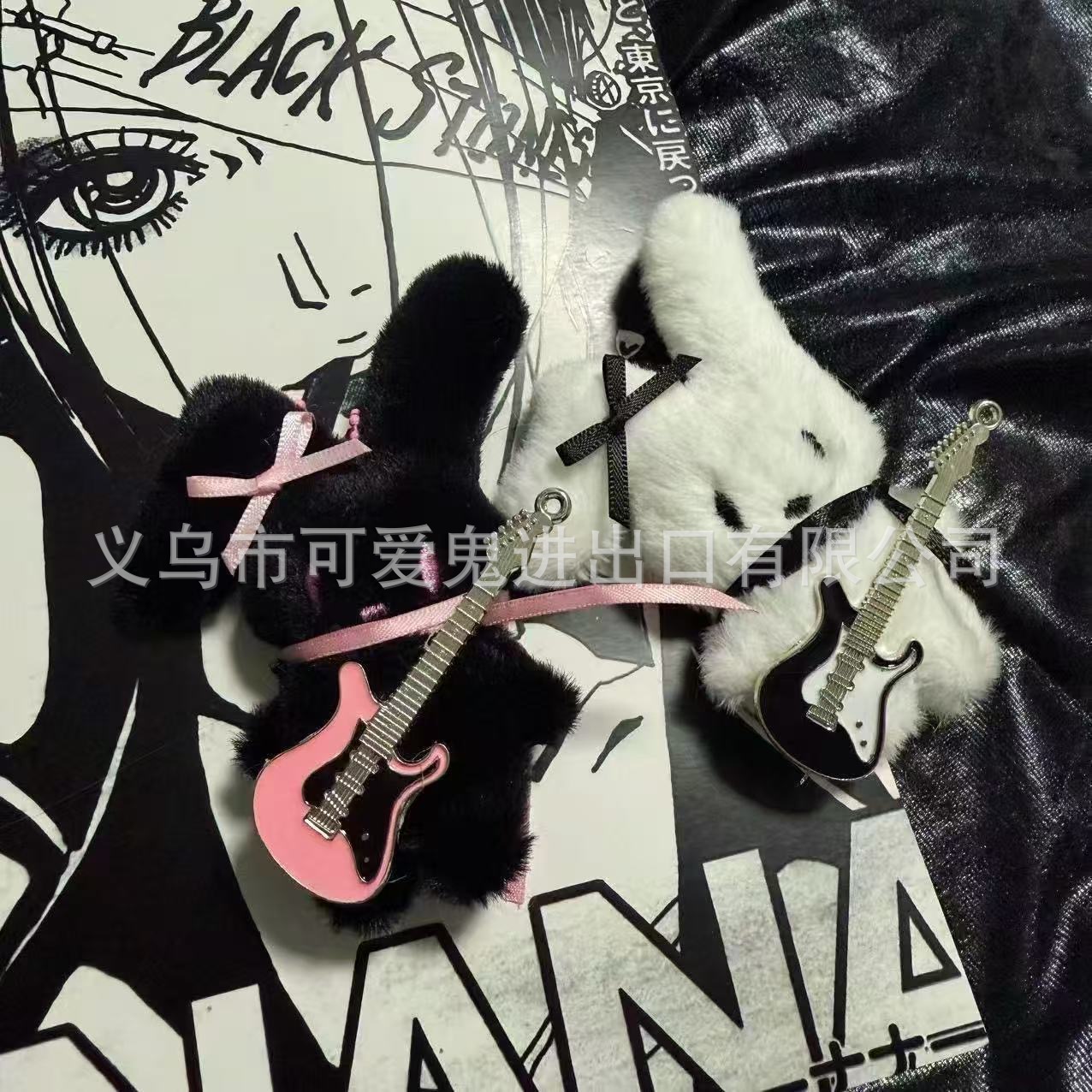 かわいいパンク小さな黒猫人形ストラップロック首輪ギターぬいぐるみ祝日誕生日プレゼント