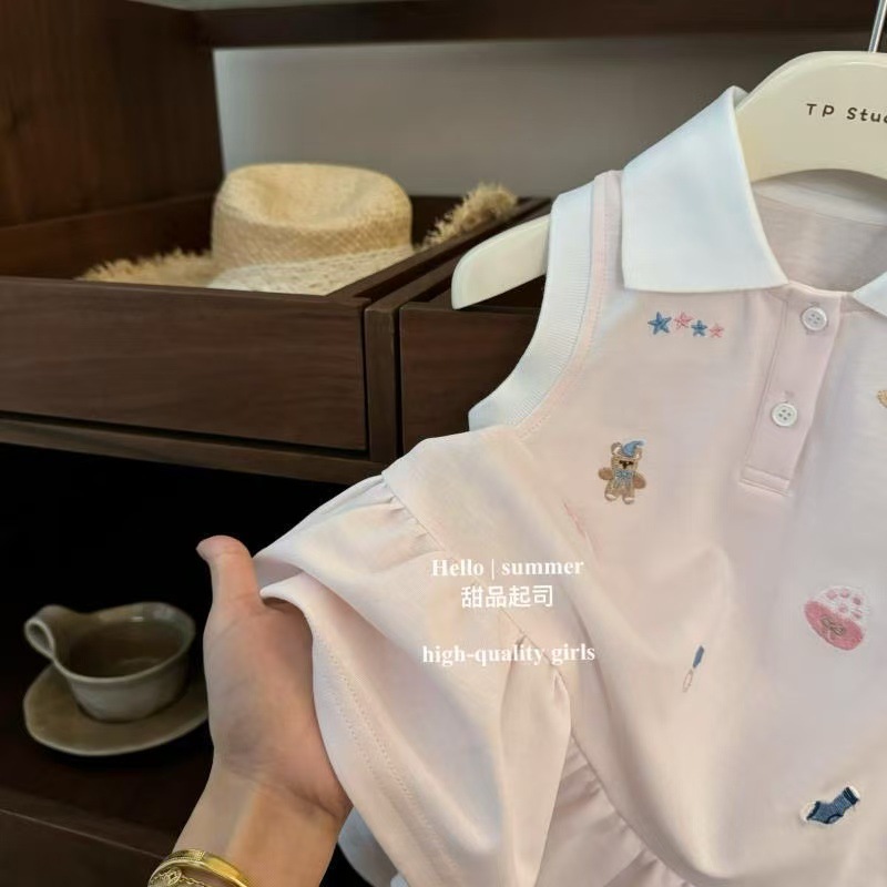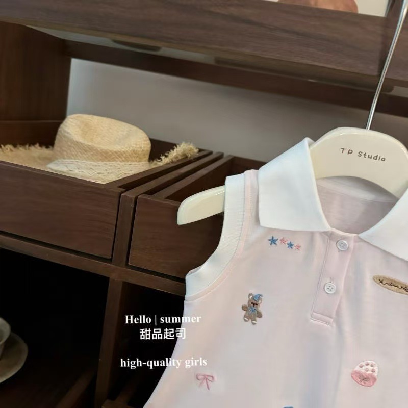 超元気女の赤ちゃんかわいい韓国版洋気アニメ刺繍polo襟ベストワンピース2025新型夏