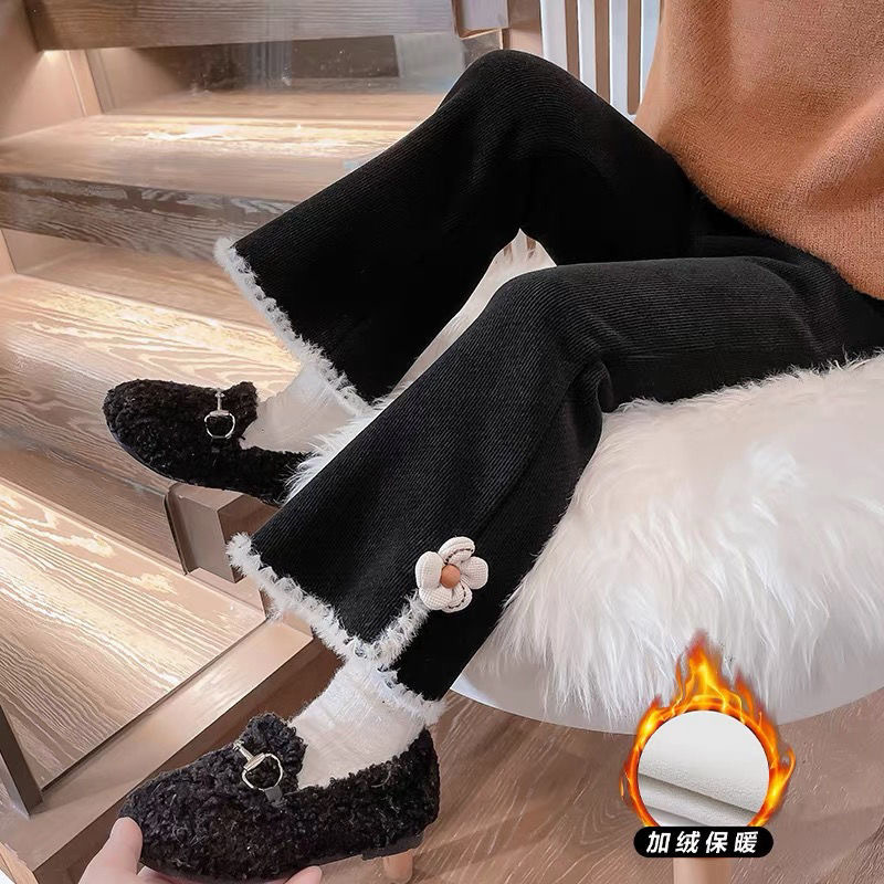 女の子のズボン秋冬の金の2024の新型の洋気のラッパのズボンの中で子供のファッション的な冬の女の宝の白色のベルベットのズボン