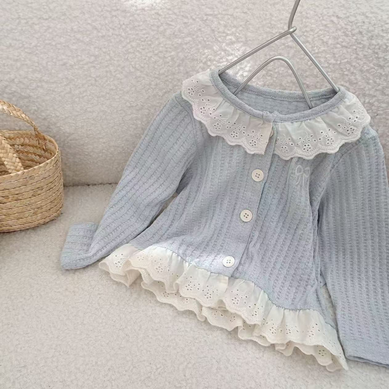 2024夏の新商品の女の子の袖なしのレースのシャツの子供のシャツの襟なしの子供の洋気の韓国版の女性の赤ちゃんの夏服