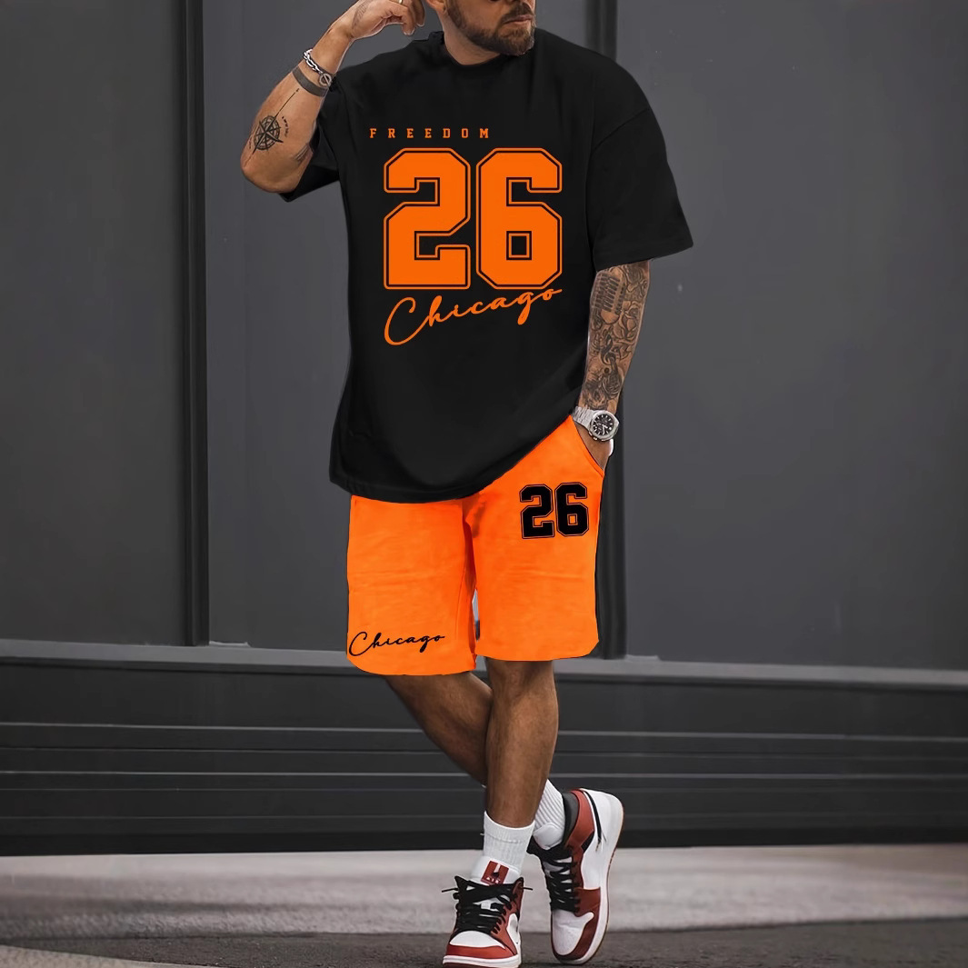 2025 越境ホットセールスーツファッション半袖 Tシャツパンツルーズ紳士服 3D デジタル印刷ジョギング 2 点セット