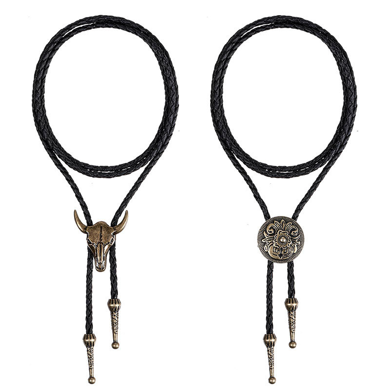 ポロのネックレスbolo tie欧米西部のデニムの長いタイプのペンダントの毛のチェーンの皮革はbola tieを調節することができます。