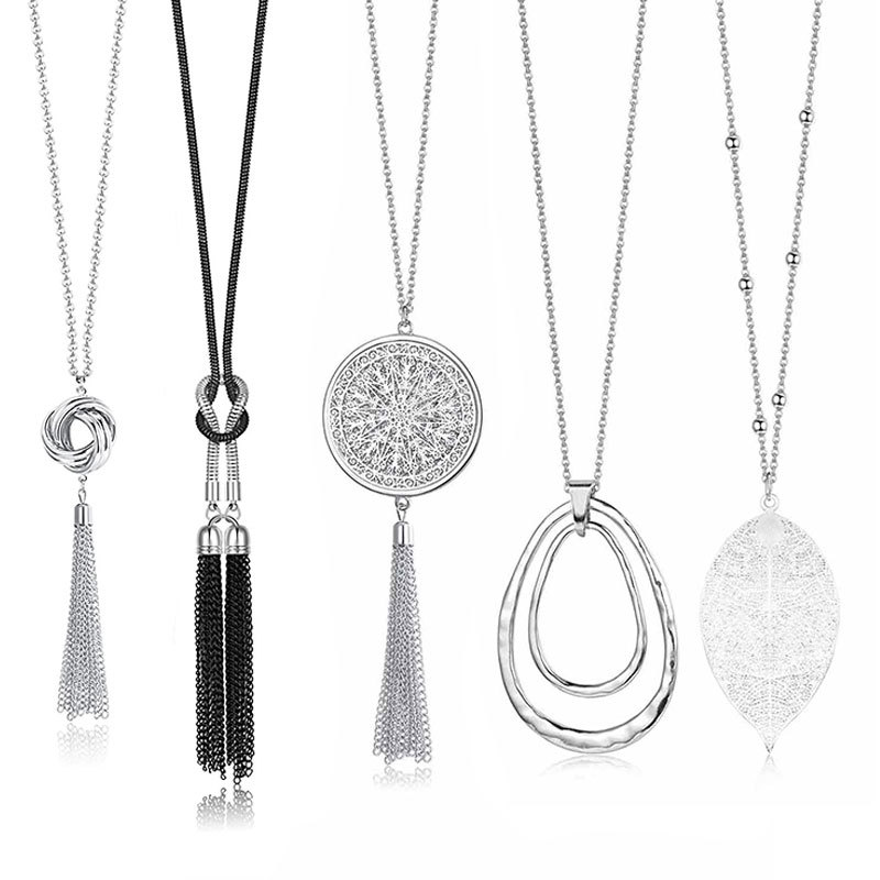 ヨーロッパとアメリカのクロスボーダーメタル中空葉水滴ペンダントセーターチェーン女性のパーソナライズされたシンプルな巻き長ネックレスジュエリー