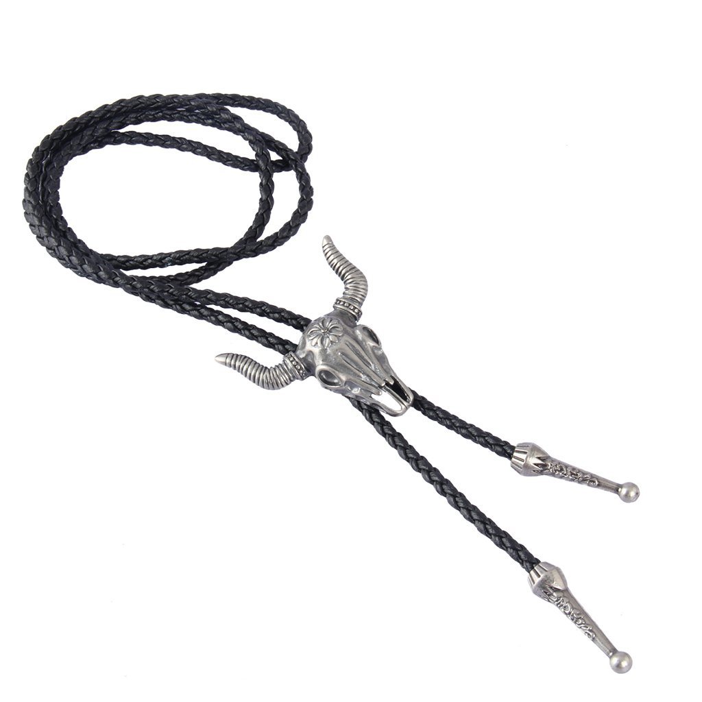 欧美跨境五角牛合金吊坠波洛领项链复古朋克风男士皮质长项链配饰