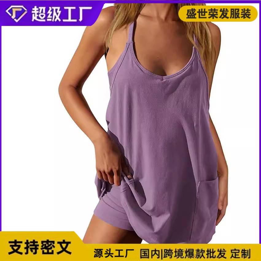 2025年欧米向け新作ノースリーブポケット付き細ストラップスポーツキャミワンピース