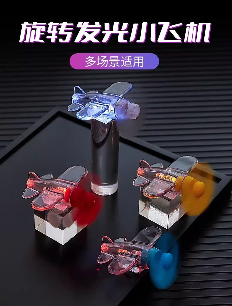 青く光る小さな飛行機,透明でクールな光る小型飛行機