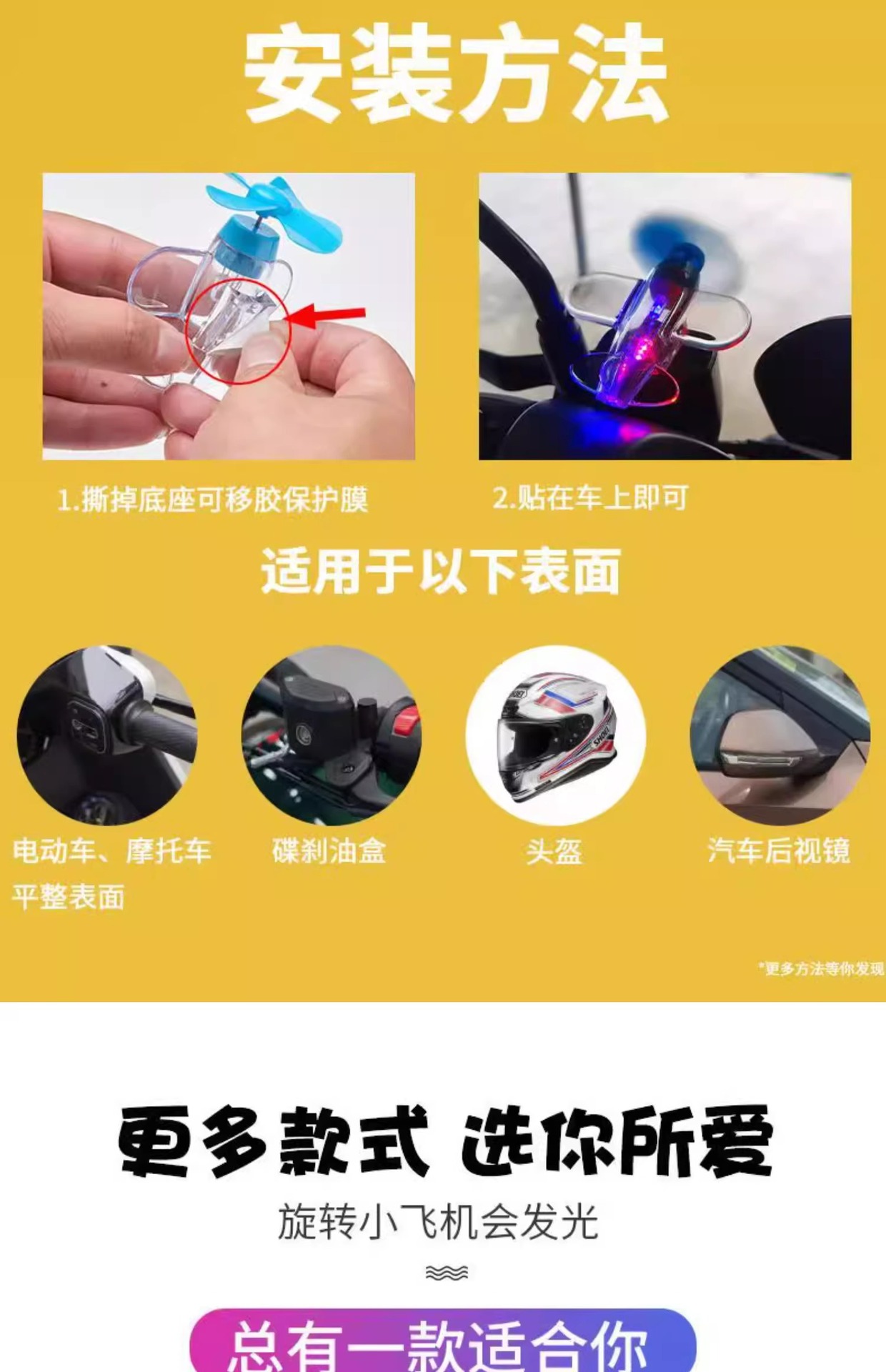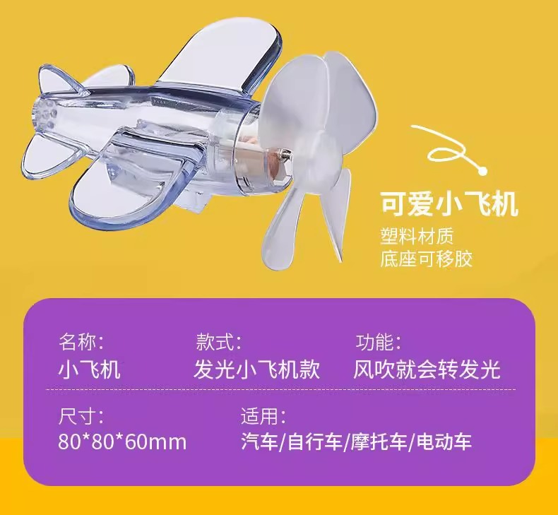 電気自動車オートバイ風力小型飛行機風力発電LED点灯カラーランプ車載装飾品自動車