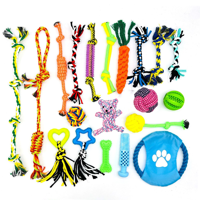 越境ペット犬玩具コーキ編みひも玩具セット歯磨きひも結びペット玩具