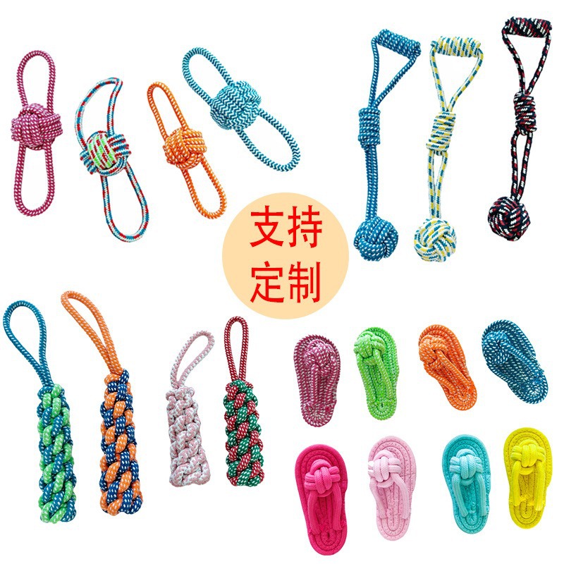 カスタマイズされたペット用品、犬の綿結び目おもちゃ、歯ぎしり、歯の掃除、噛みつき防止、退屈解消、結び目犬のおもちゃの大規模なコレクション