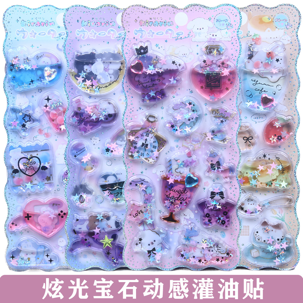 炫光宝石动感灌水贴纸儿童摇动卡通立体贴水晶贴画益智玩具小奖品