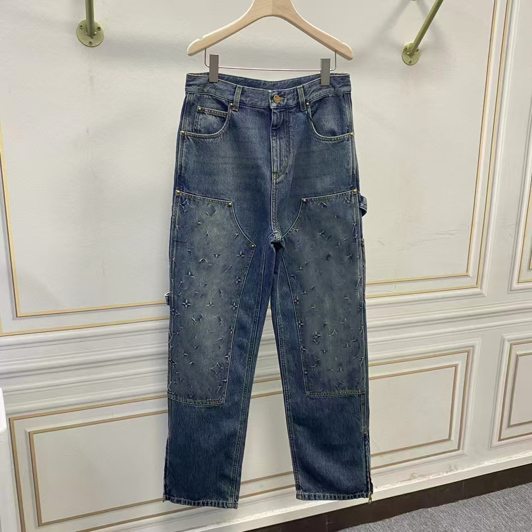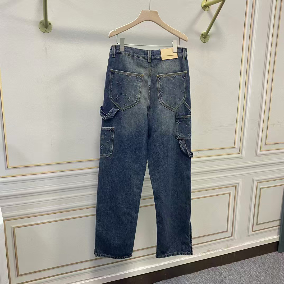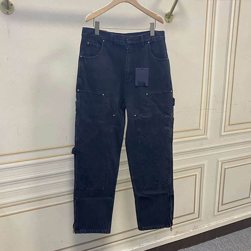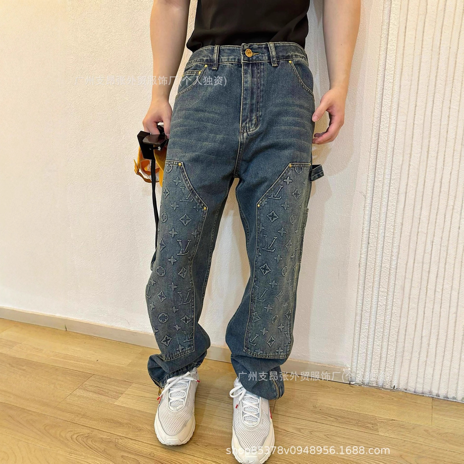 驴家25新款浮雕压花压纹工装水洗牛仔裤钢印高品质L家长裤百搭潮