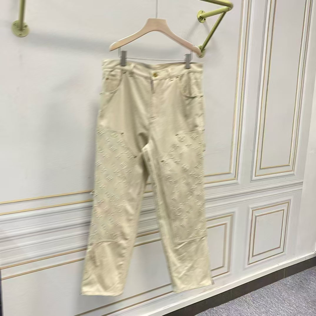 25ss欧洲站潮牌早春新款字母压花浮雕提花牛仔夹克时尚男女长裤