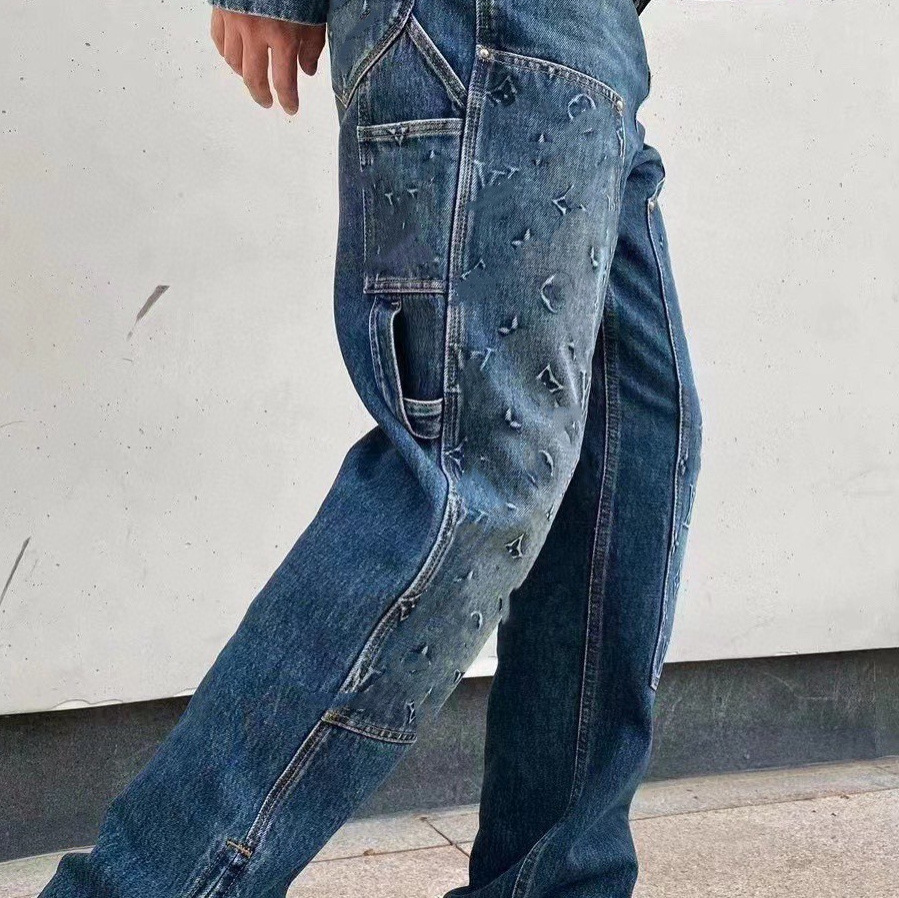 新しいロバの家のファッションのジーパンの男性のゆったりしている直筒の高い街の工装の重いポンドの水洗いの2025の新型の印の花の秋
