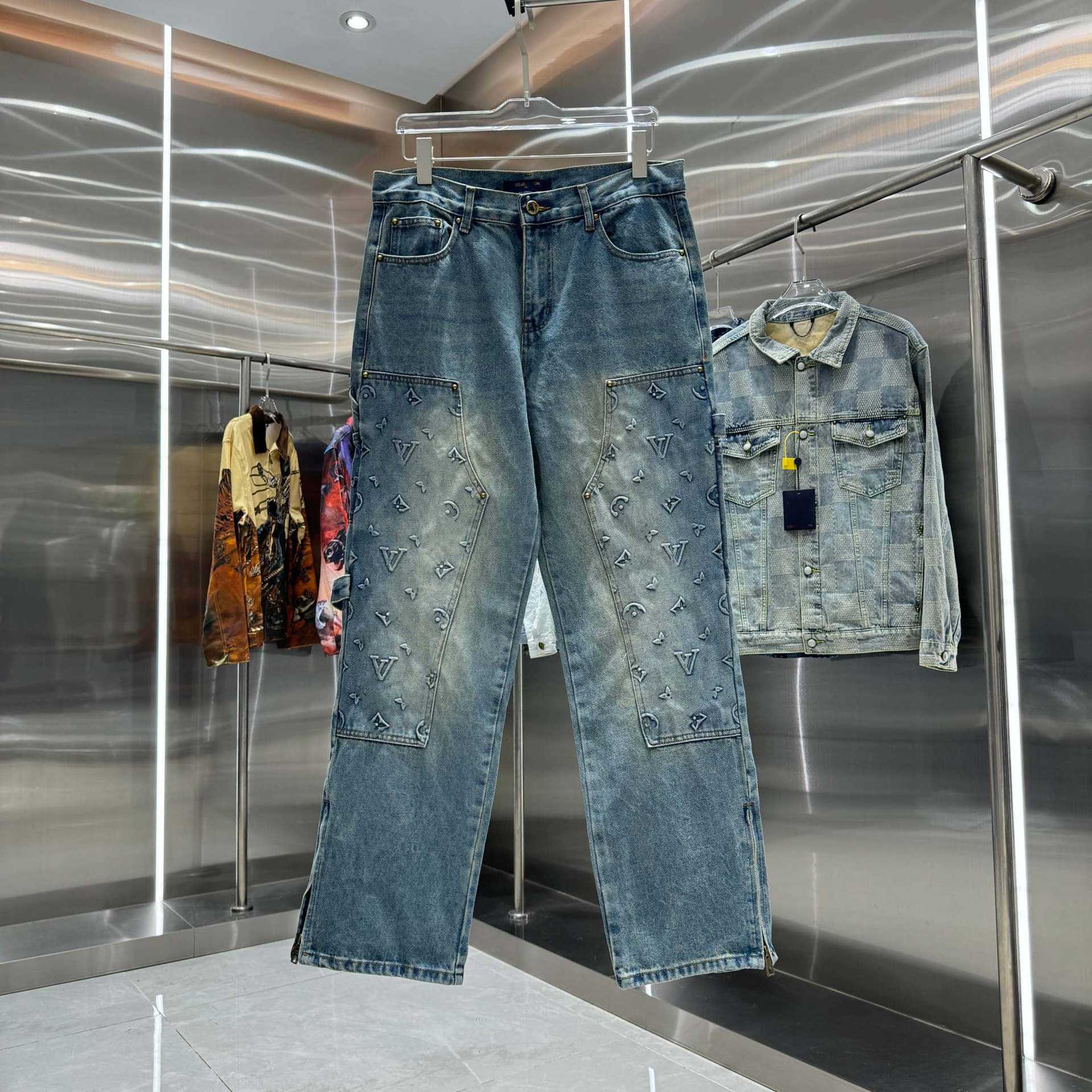 跨境高版本25驴家潮牌字母压花浮雕提花牛仔夹克时尚男女长裤棉