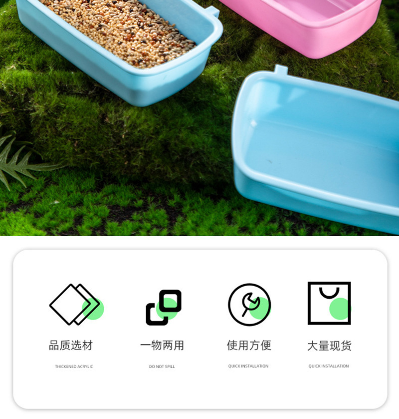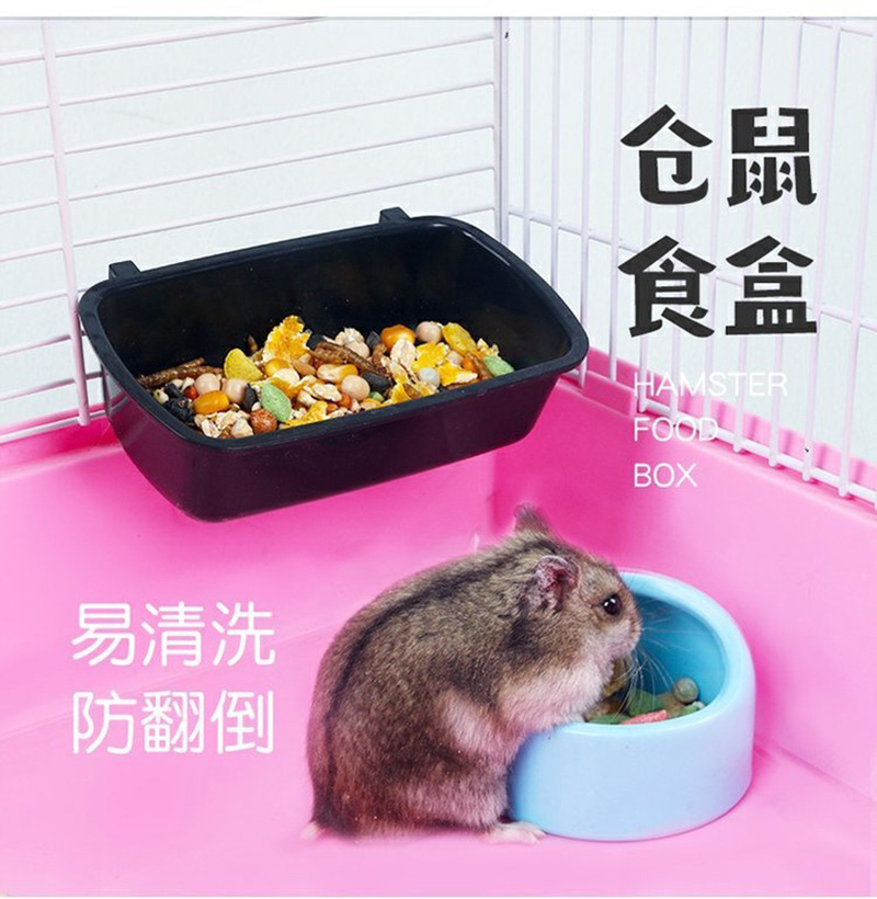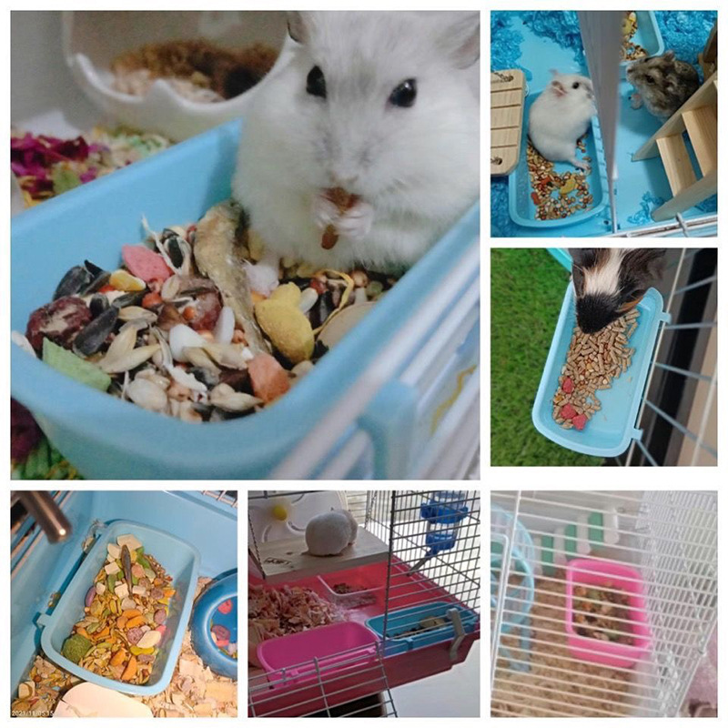 ハムスターフードボウル、吊り下げ式小型ペットフードボックス、ゴールデンベア、チンチラ、固定式非転倒長方形ライスボウル、防滴基本ケージ