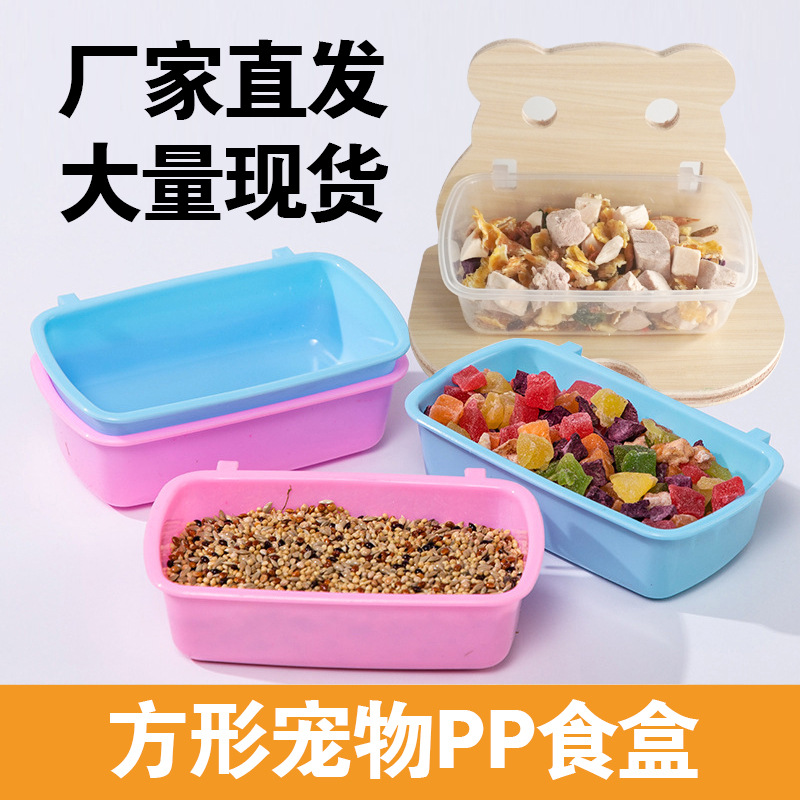 ハムスターの鉢の長方形の弁当箱のプラスチックの金糸熊の花の枝の食器は基礎のかごを掛けてペットの食器を使うことができます。