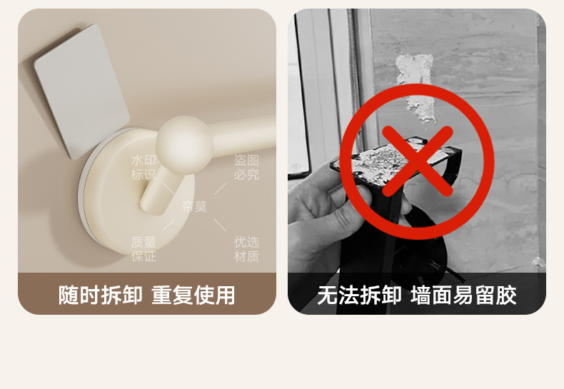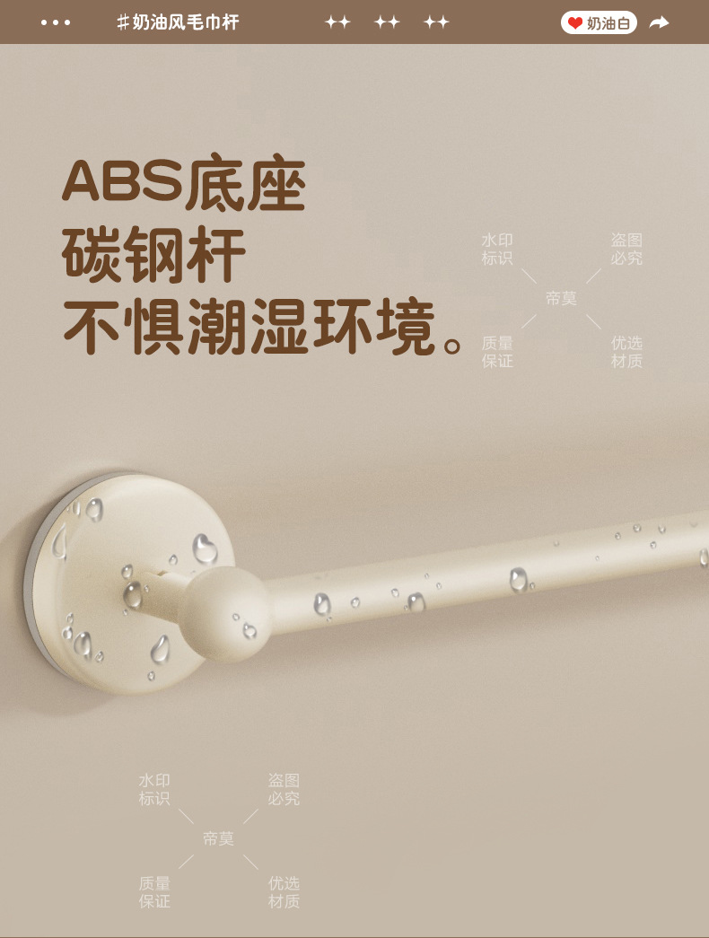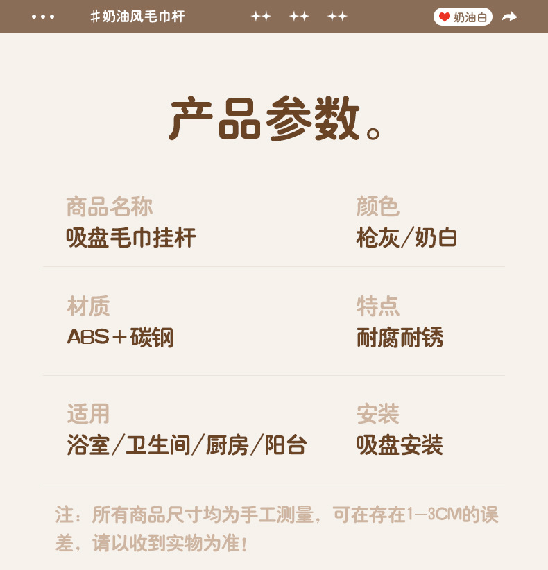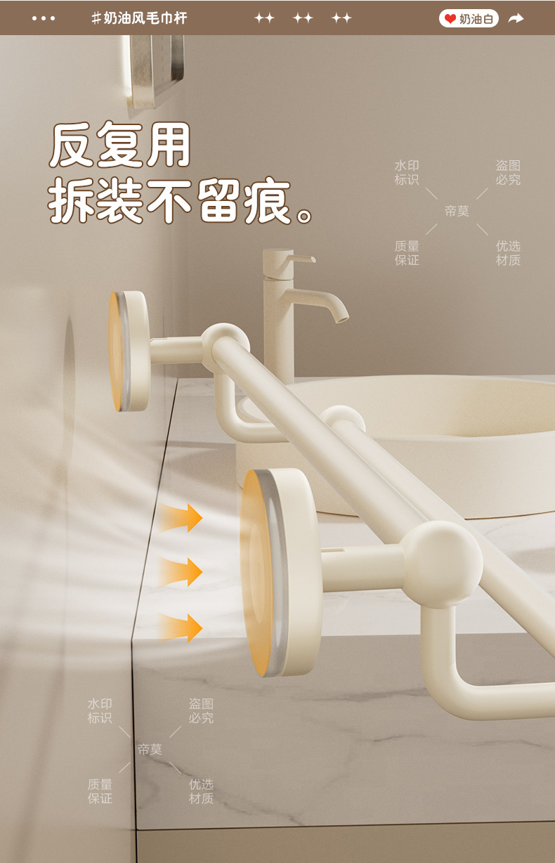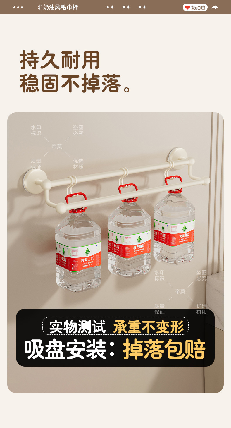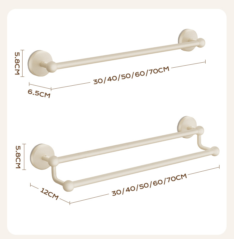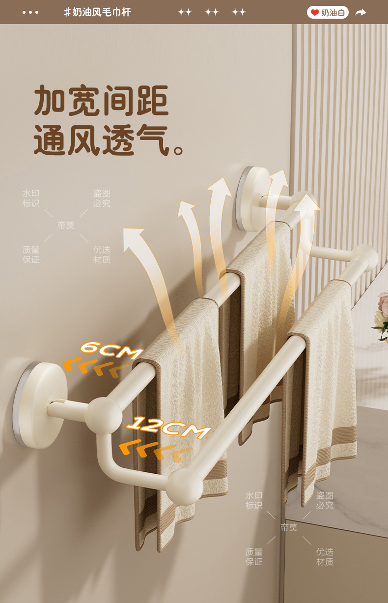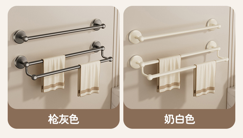 クリーム風吸盤タオルラックトイレ穴なし浴室タオル棒バスタオル壁掛けラック収納ラック