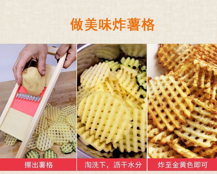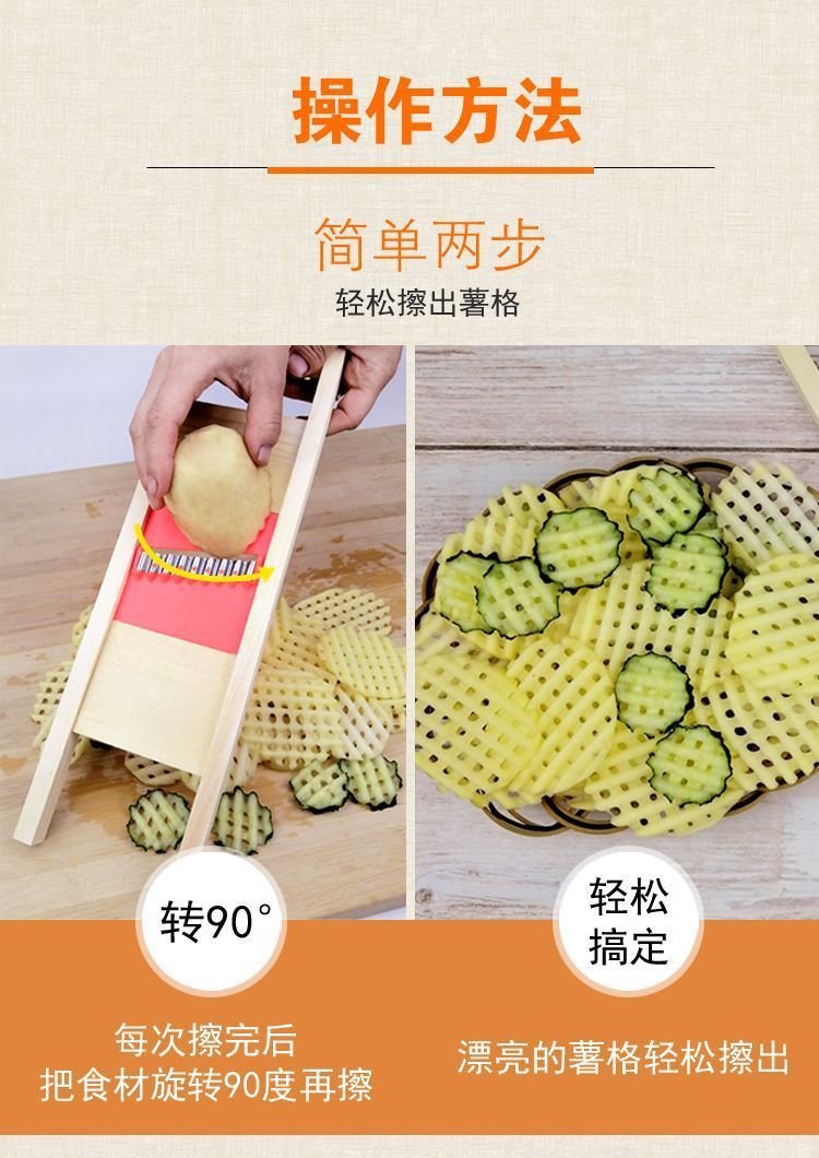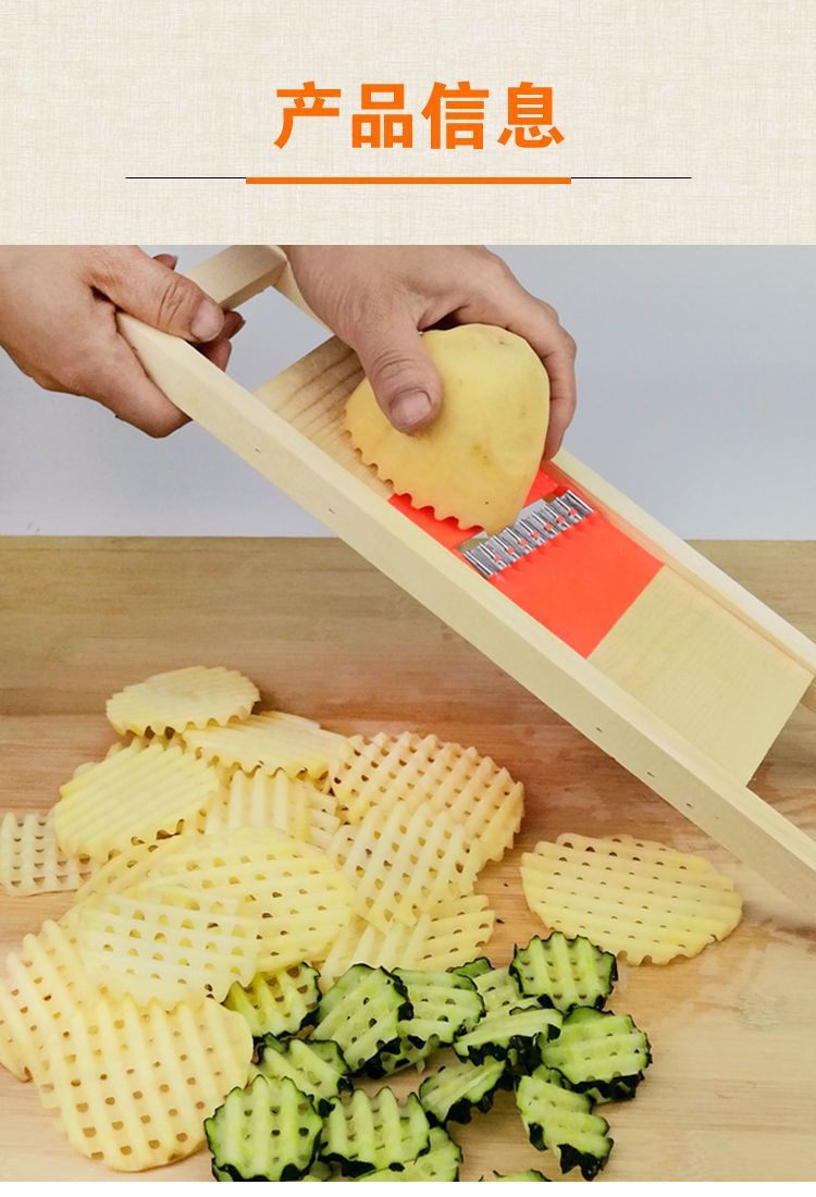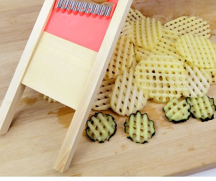 ポテトスライサー、ステンレス製フライドポテトスライサー、ポテトスライサー、キュウリ、多機能野菜カッター、木製おろし器