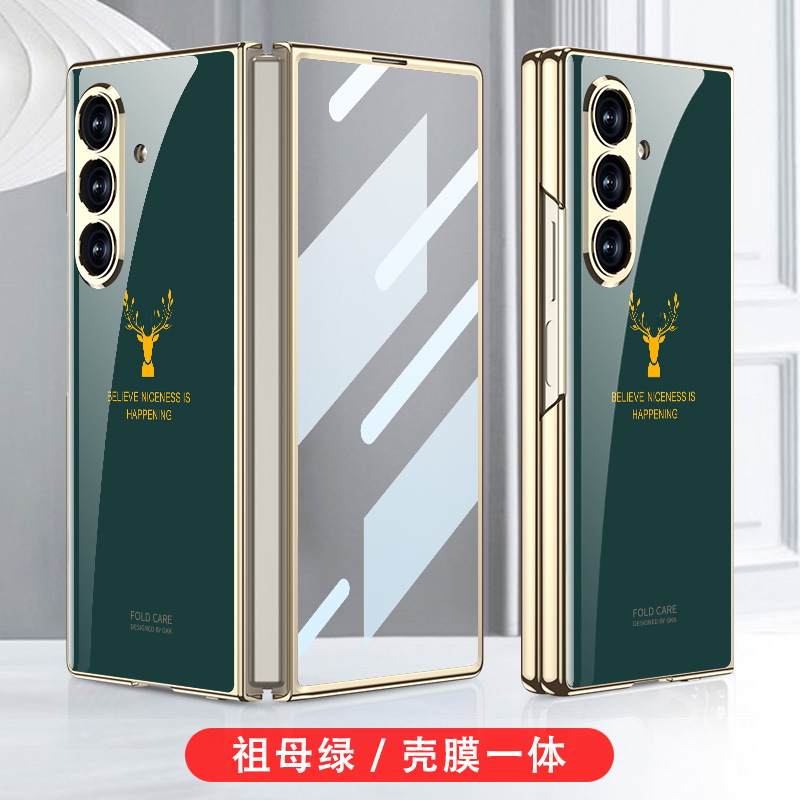 适用三星zfold7手机壳电镀玻璃彩绘壳膜一体折叠屏保护套防摔套