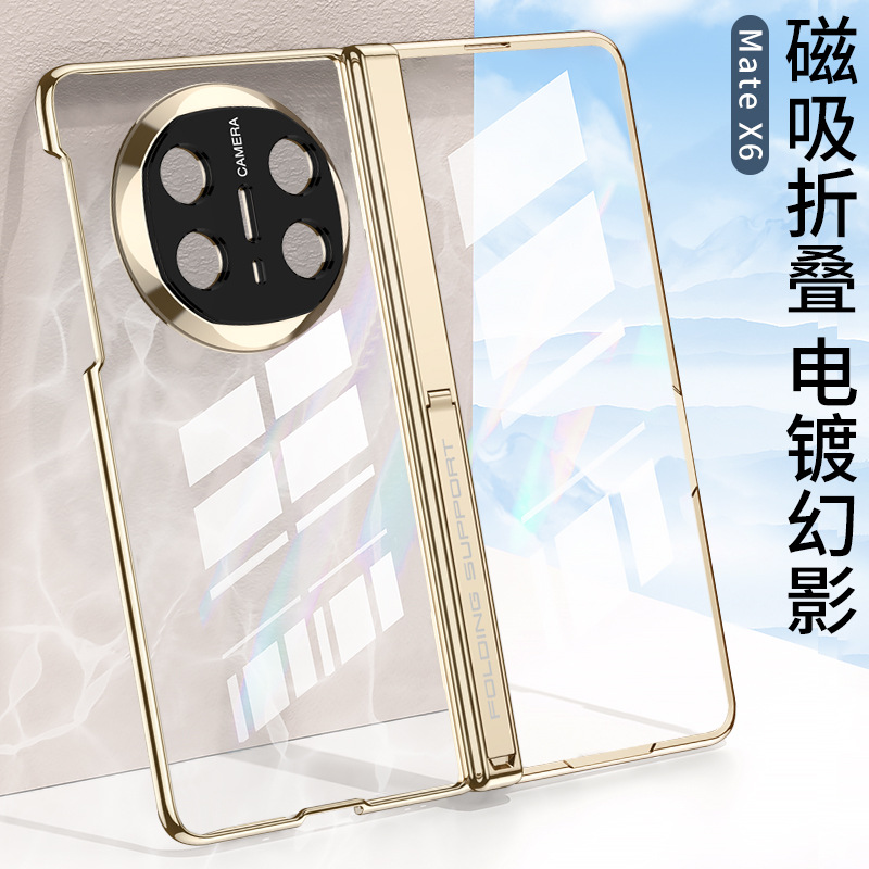適用華為Mate X6携帯電話ケース超薄型幻影保護ケースメッキフレーム磁気吸引スタンド透明ケースフィルム