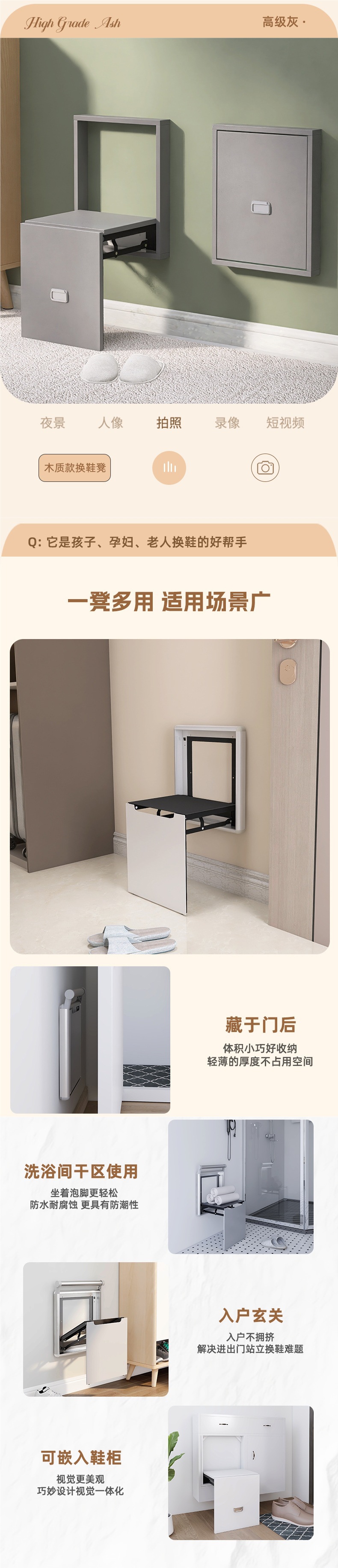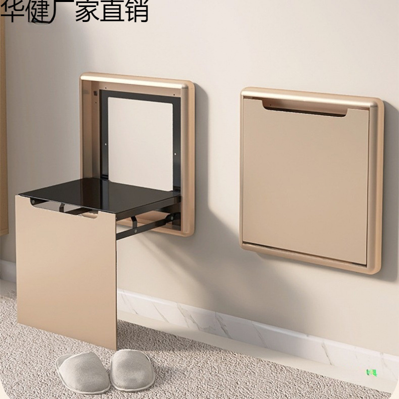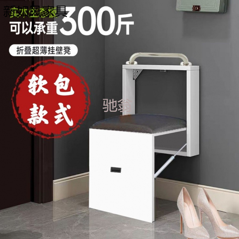 带软包折叠换鞋凳挂墙式超薄壁挂椅门口隐形凳挂墙壁挂式隐蔽凳