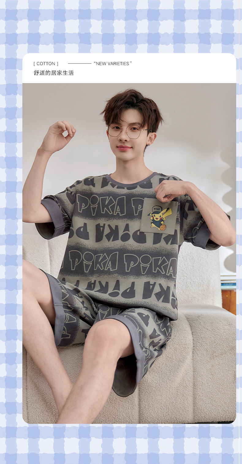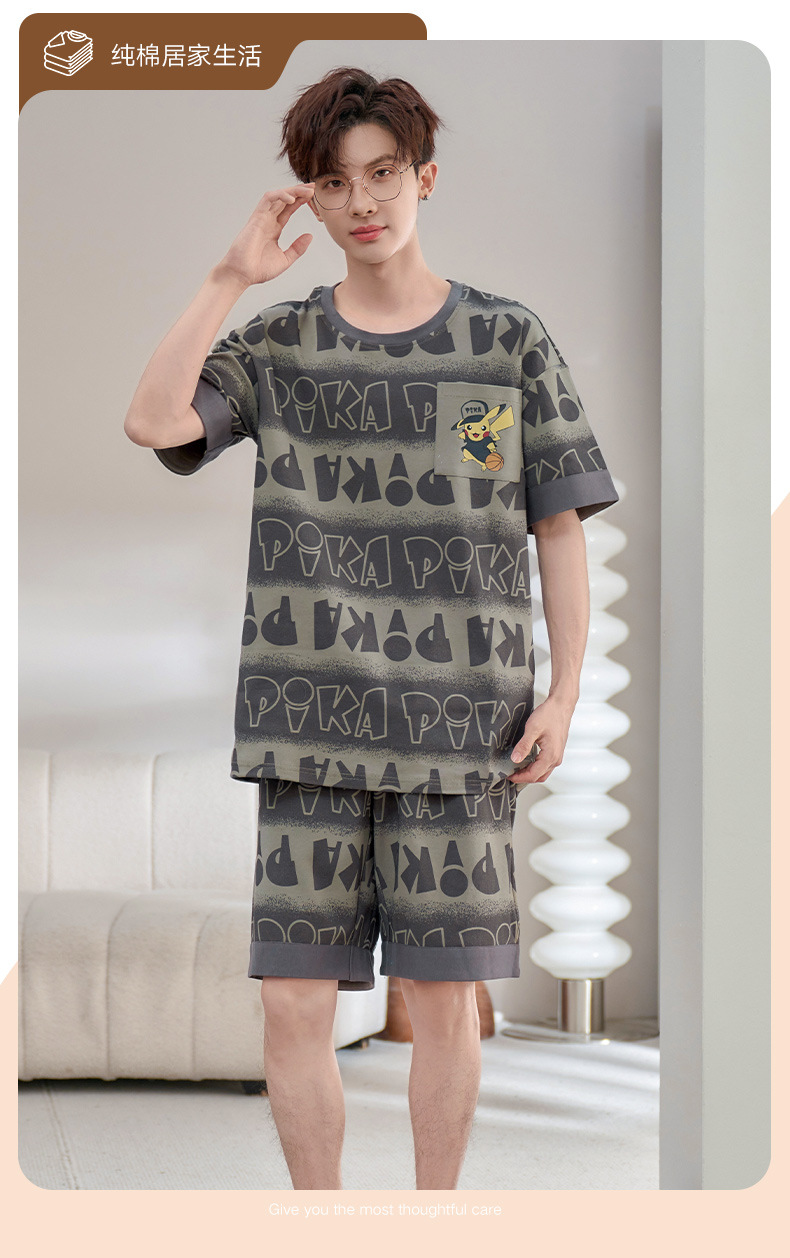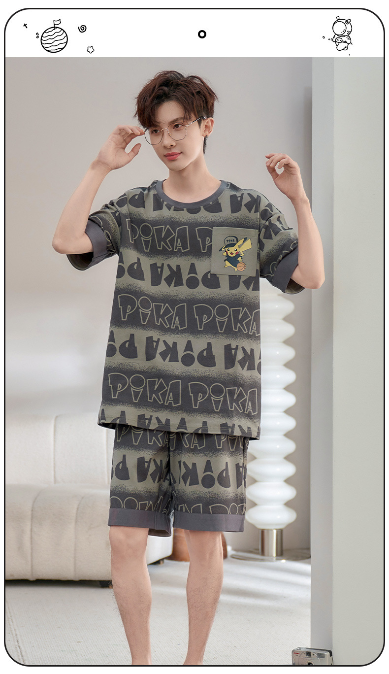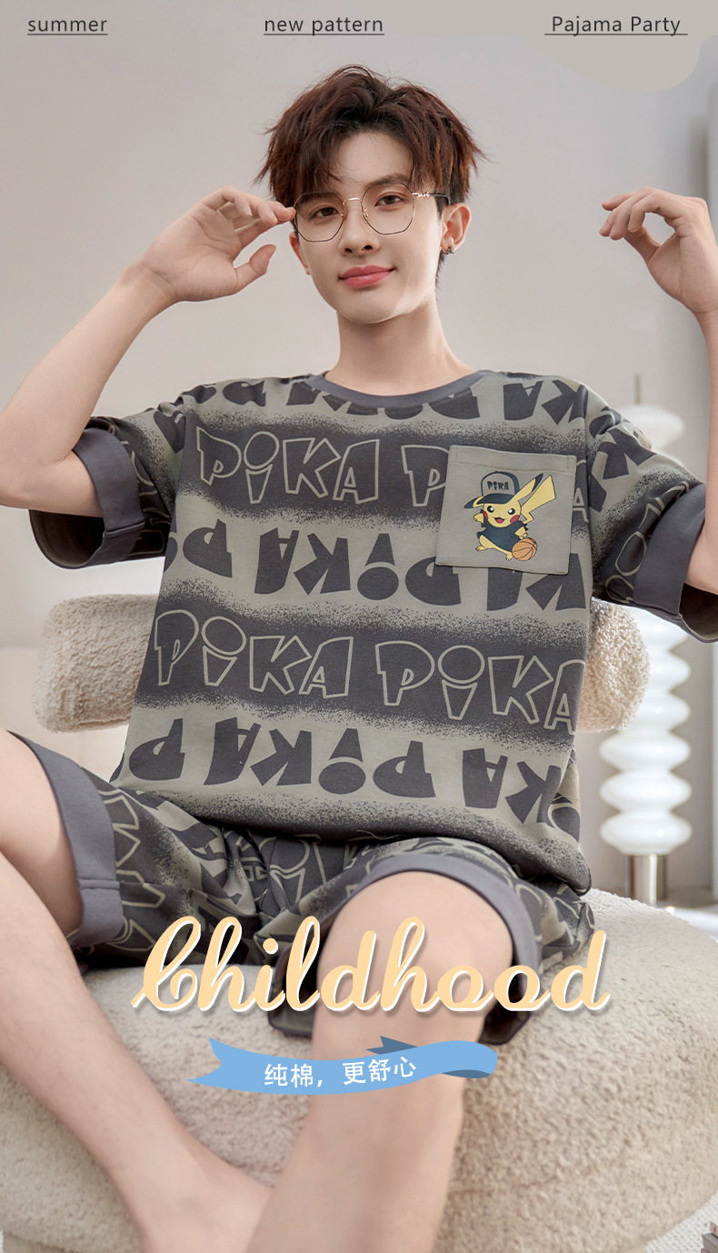 メンズパジャマ夏半袖純綿ティーンエイジャー漫画薄い男の子ホーム服セット天の既製プリント