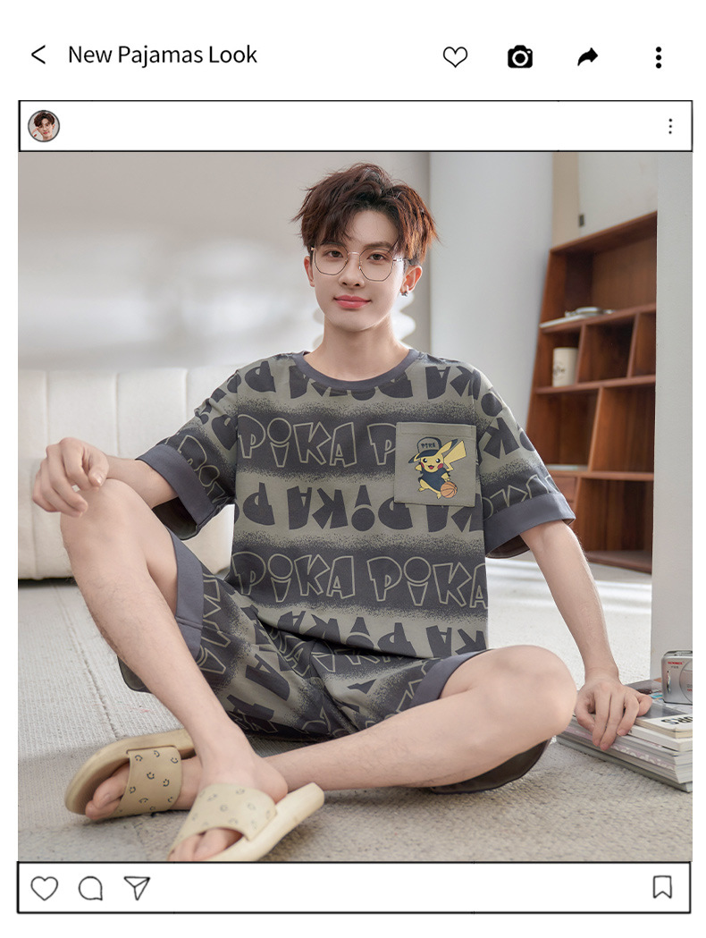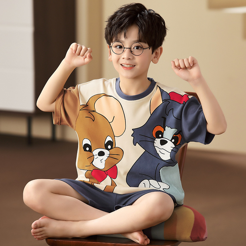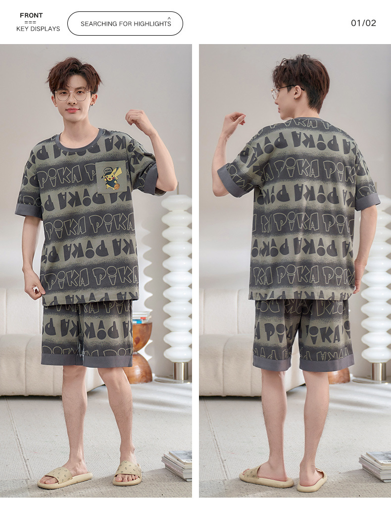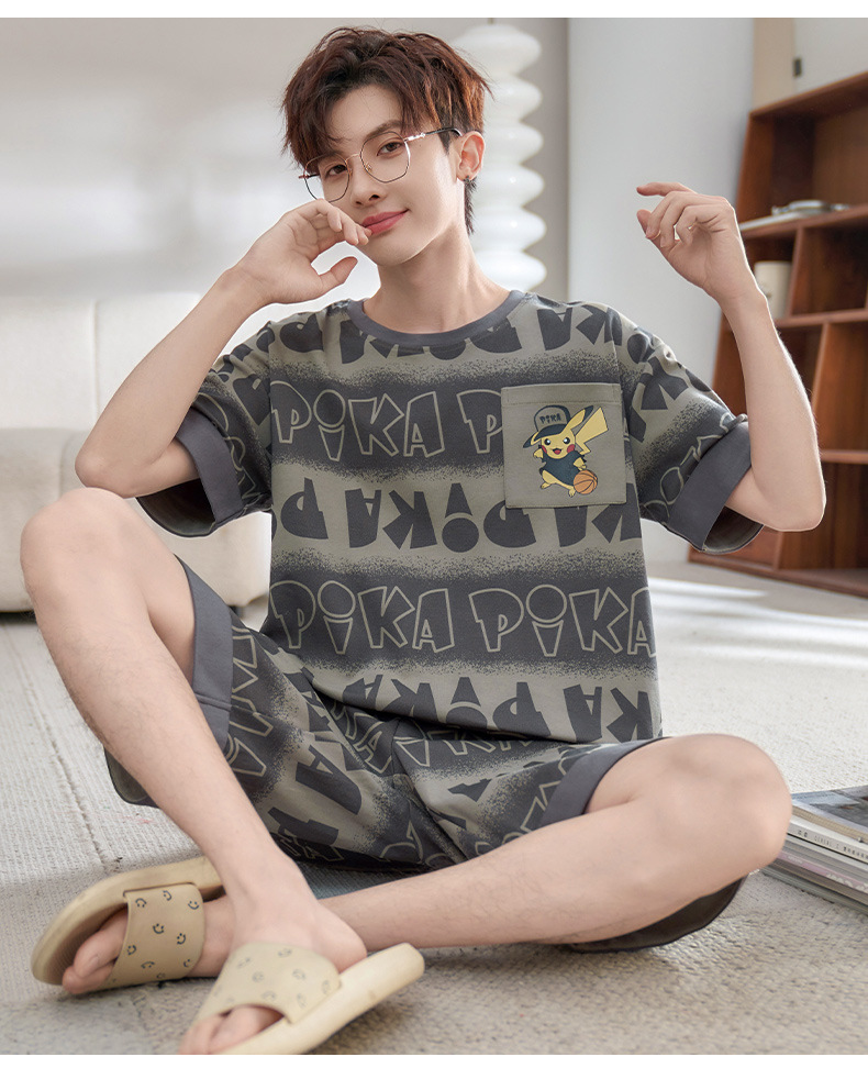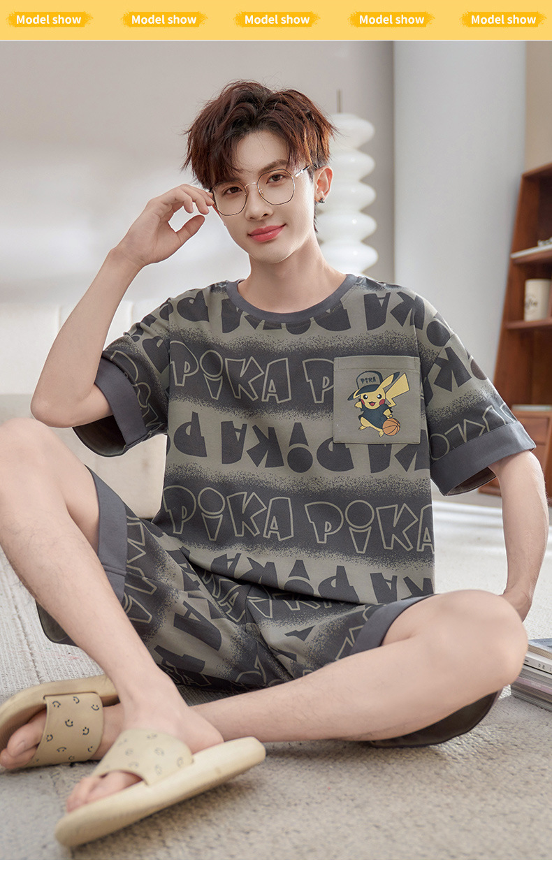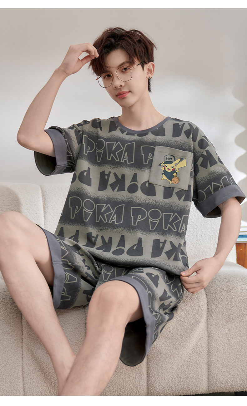 メンズパジャマ夏半袖純綿ティーンエイジャー漫画薄い男の子ホーム服セット天の既製プリント