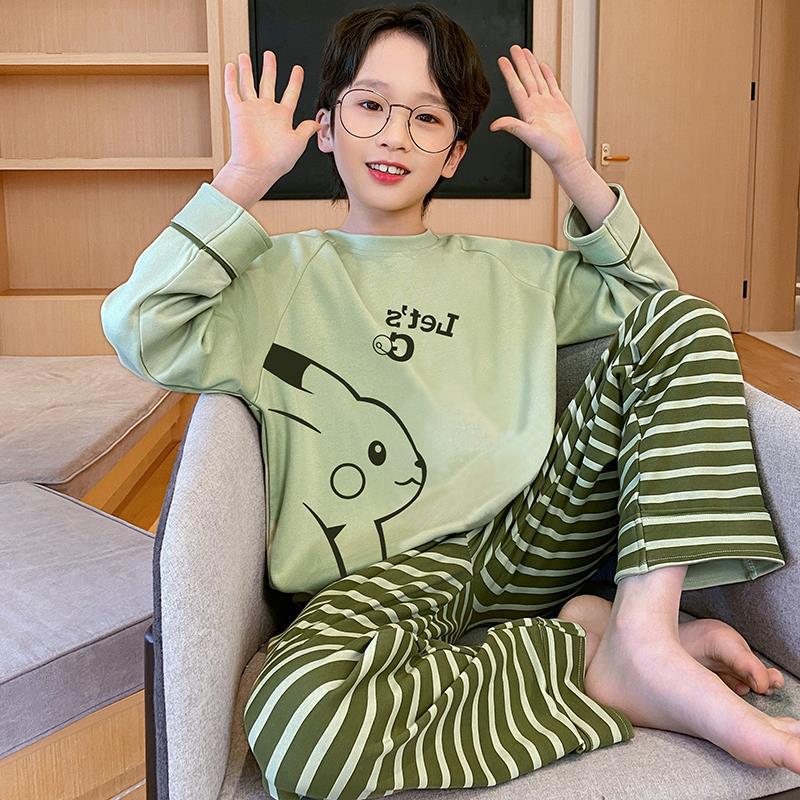 2024新型男児パジャマ春と秋の純綿長袖の薄い子供の子供の子供の家の服