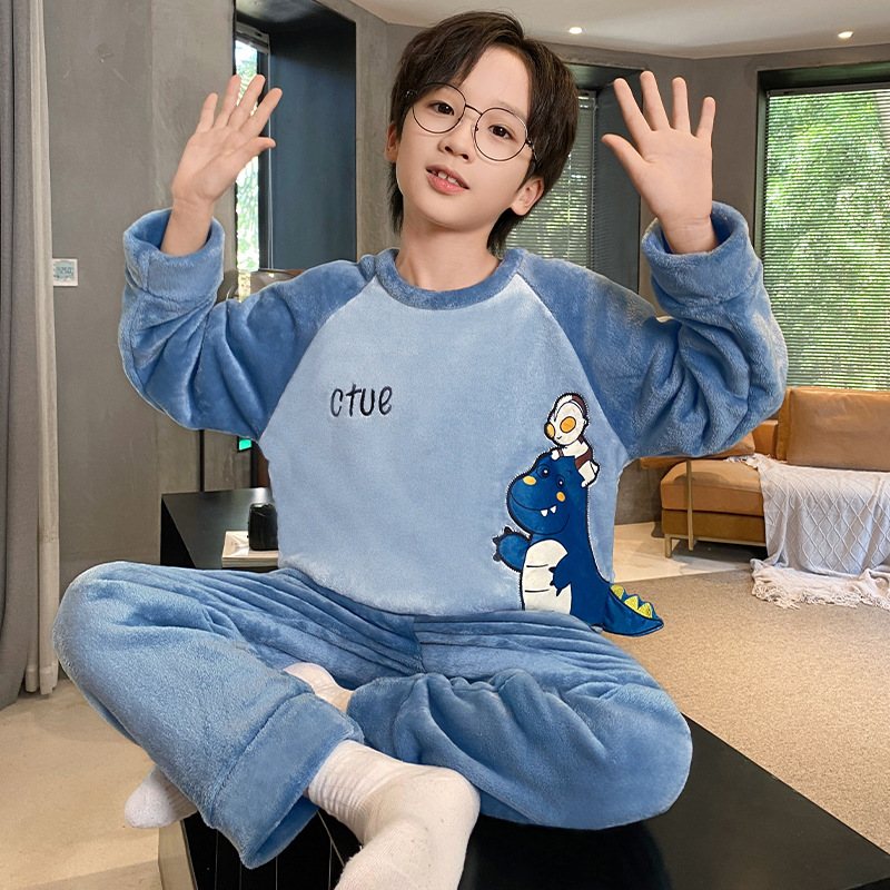 子供のパジャマの珊瑚の絨毯の冬の漫画のかわいい男の子の中で大きい子供の秋冬の男の子のフランネルの家の服のスーツ