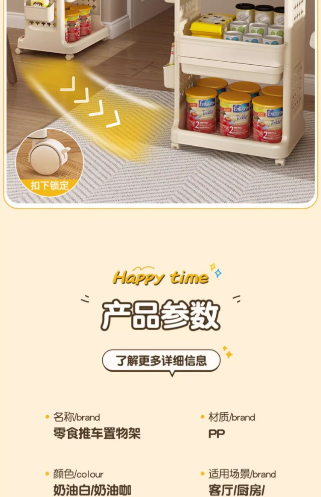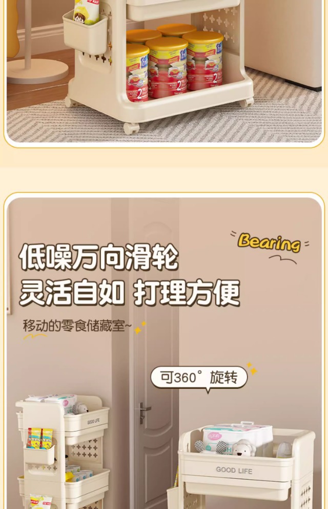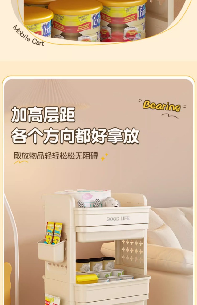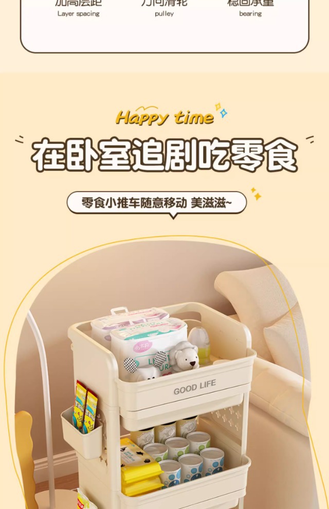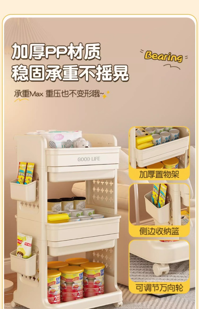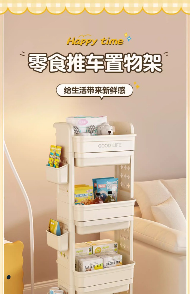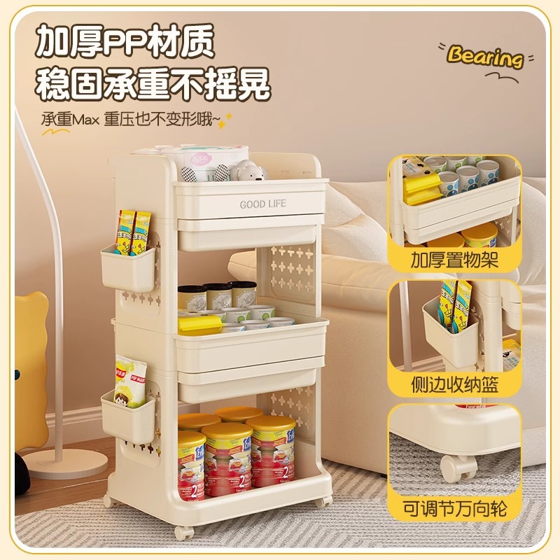 小推车置物架免安装零食收纳箱客厅玩具储物柜子家用抽屉式收纳柜