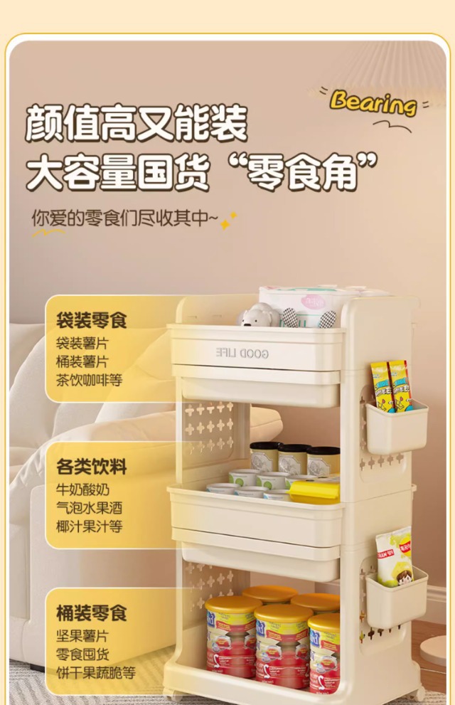 小型カートラック取り付け不要スナック収納ボックスリビング玩具収納ボックス家庭用引き出し式収納キャビネット
