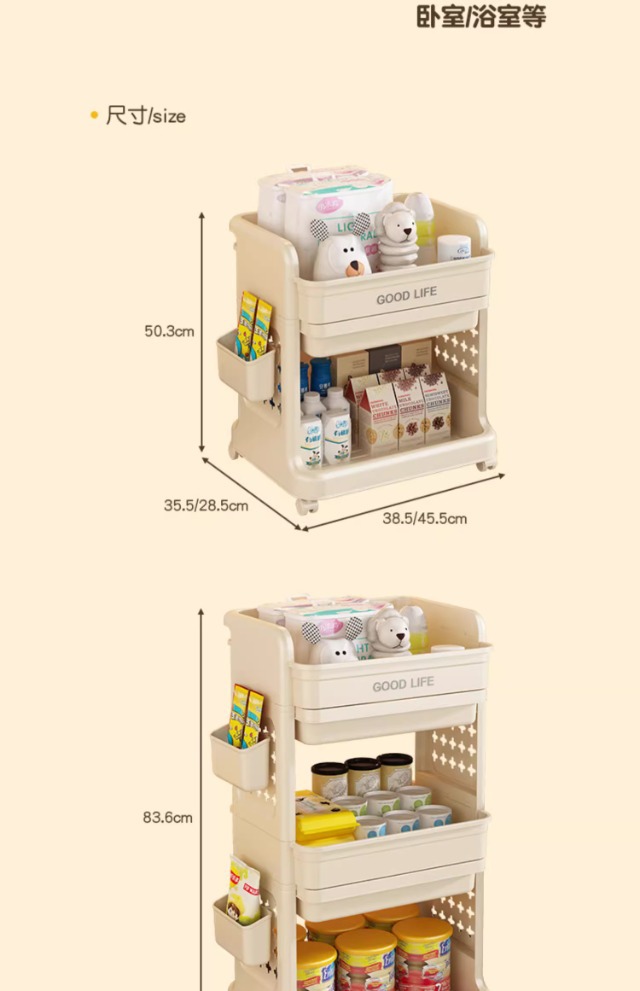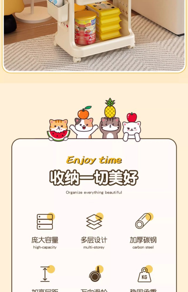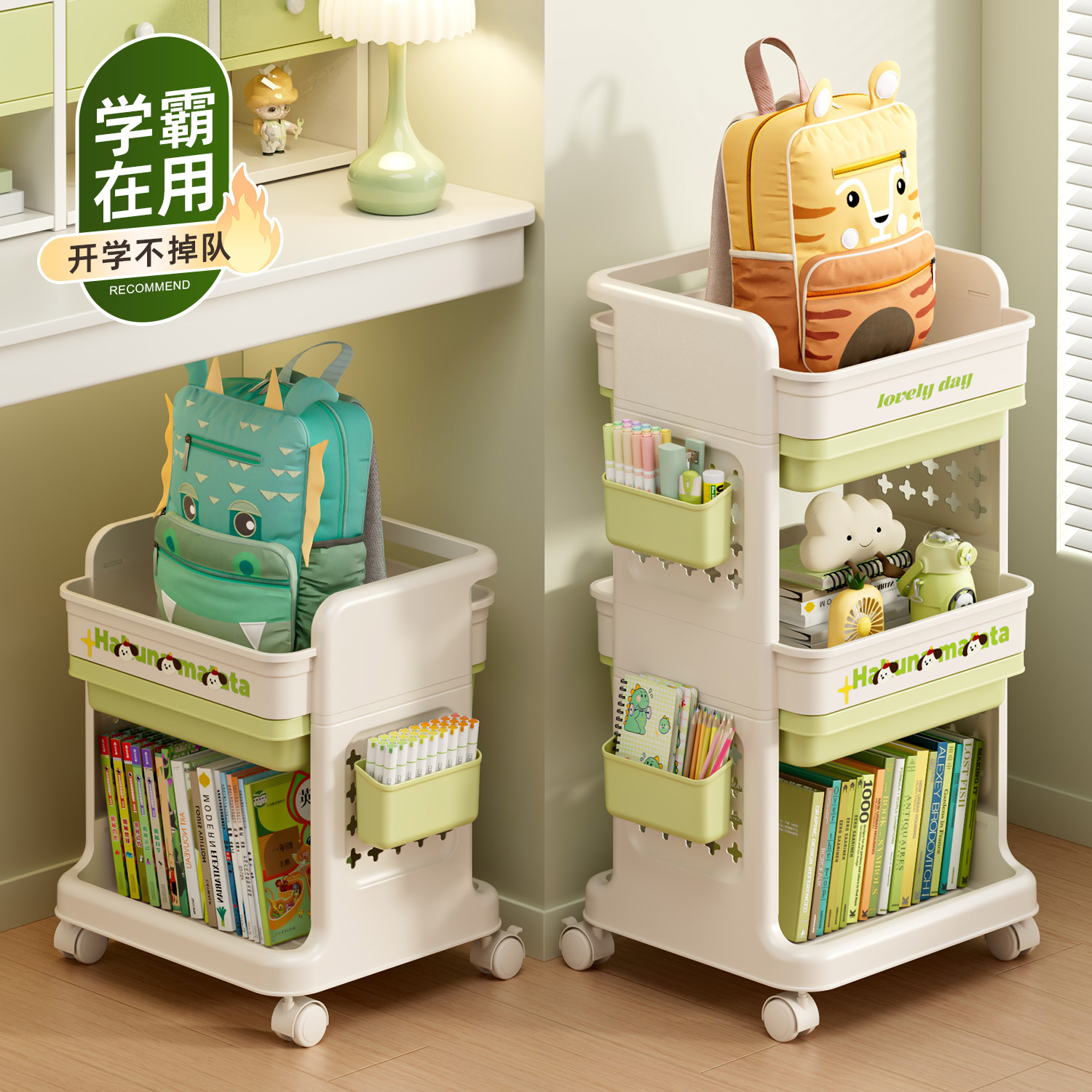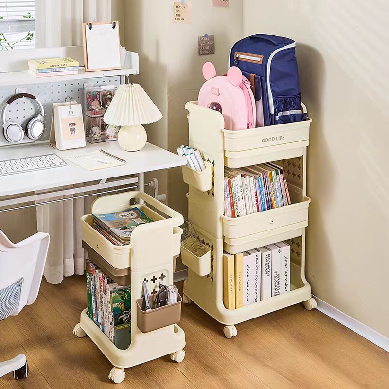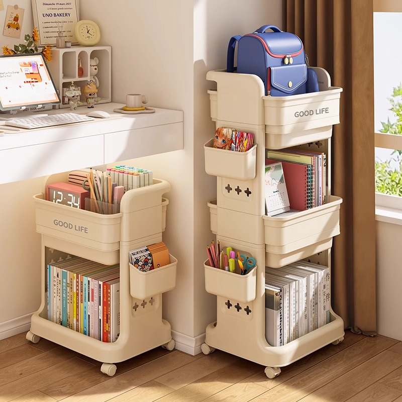 书包置物架带轮小推车多层书包架厨房卧室移动置物架落地零食架子