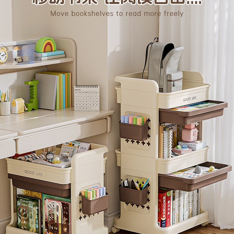 书包小推车置物架家用可移动多层书架桌下宿舍书桌侧边收纳架