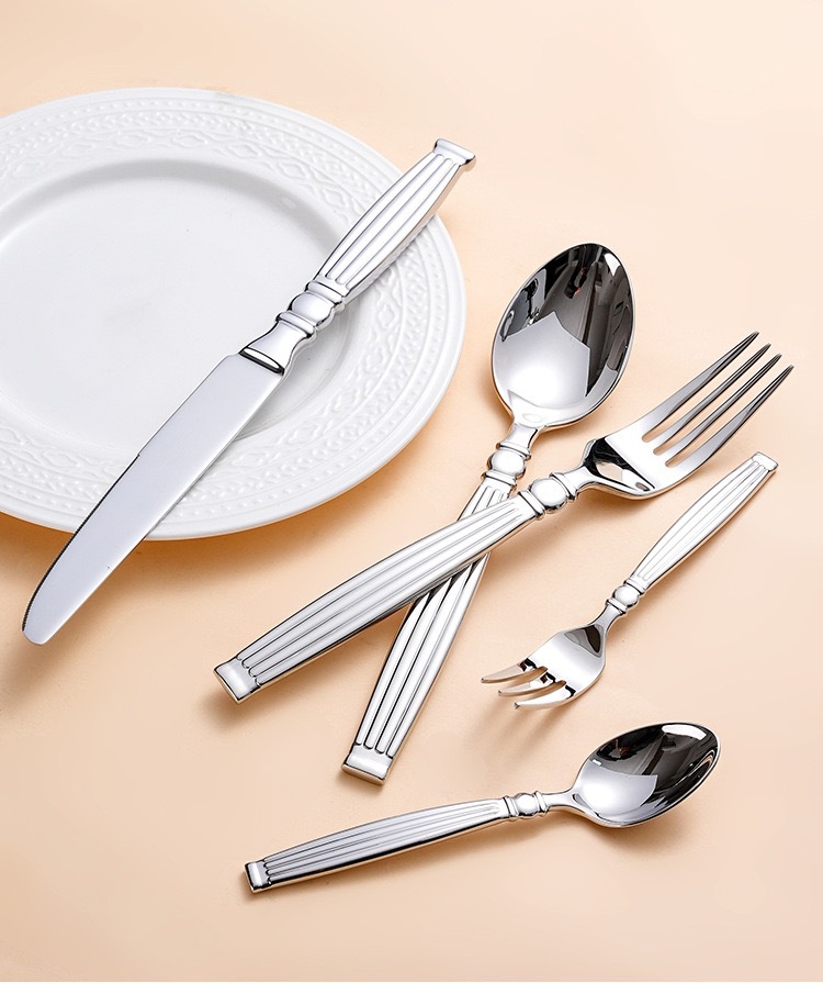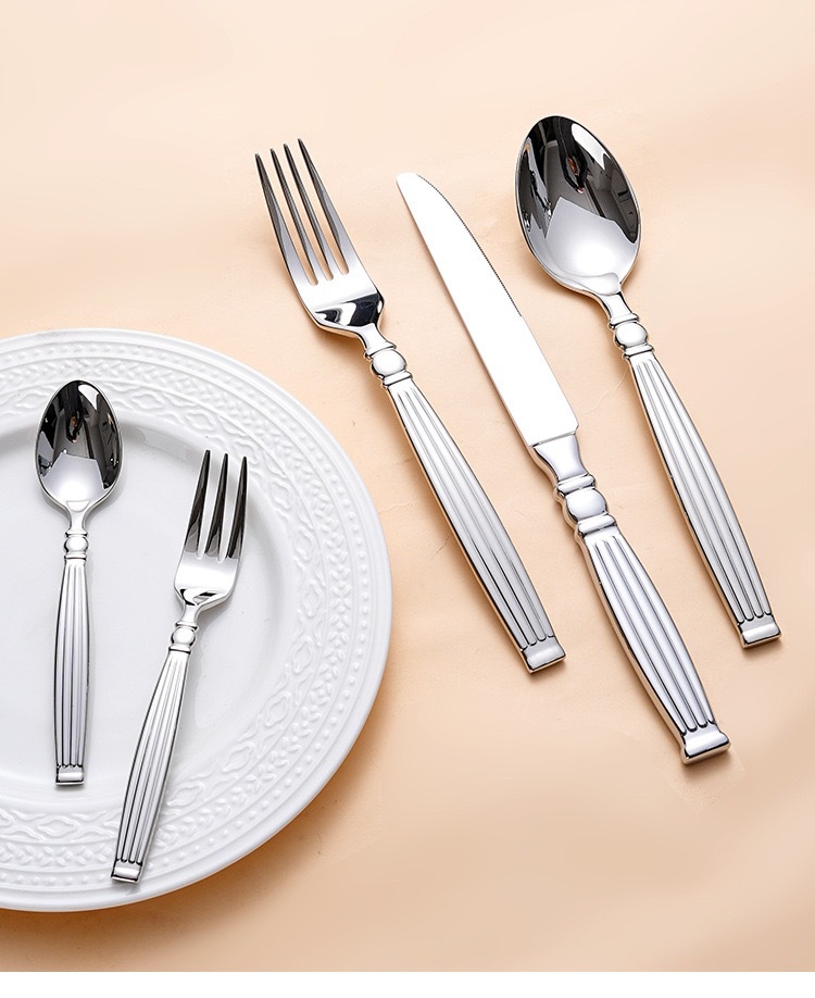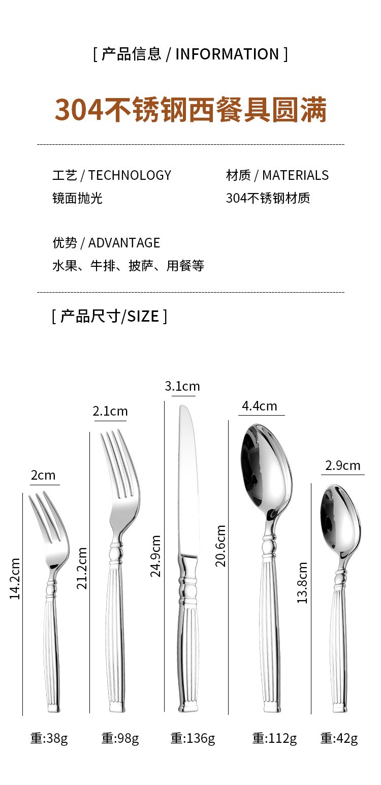 罗马柱不锈钢刀叉勺手工锻打304餐具五件套牛排刀高档西餐具