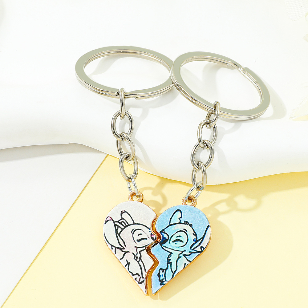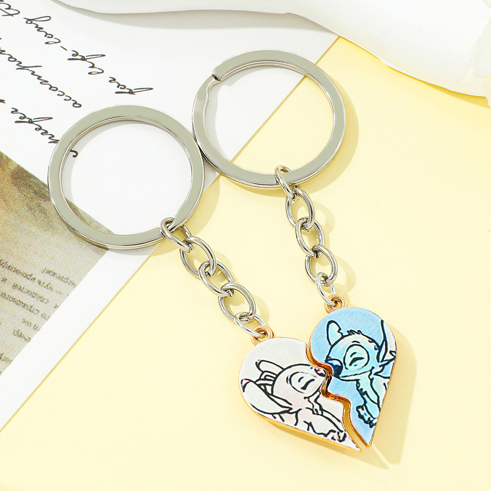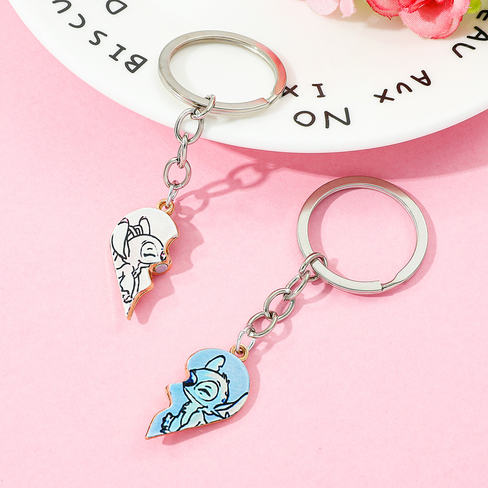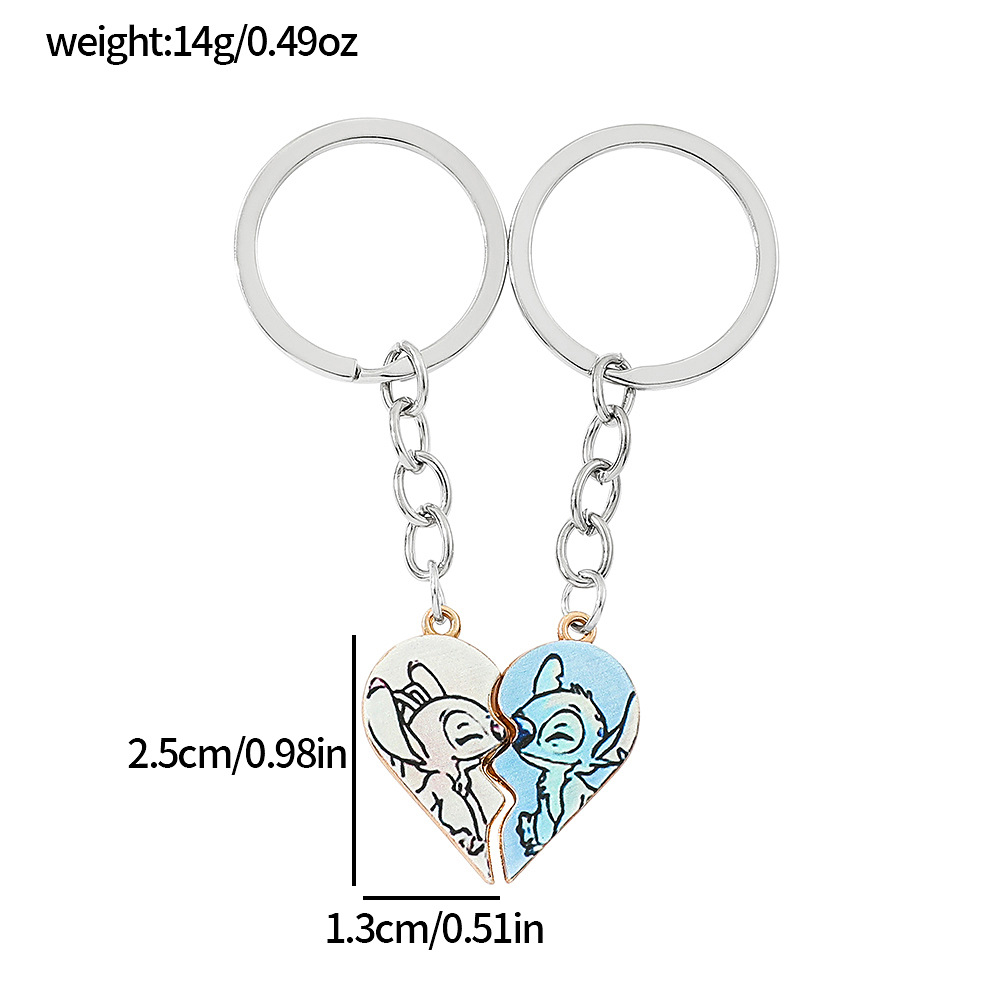 欧米越境スターズトゥース漫画スティッチエンジェルハート型亜鉛合金キーホルダー飾り