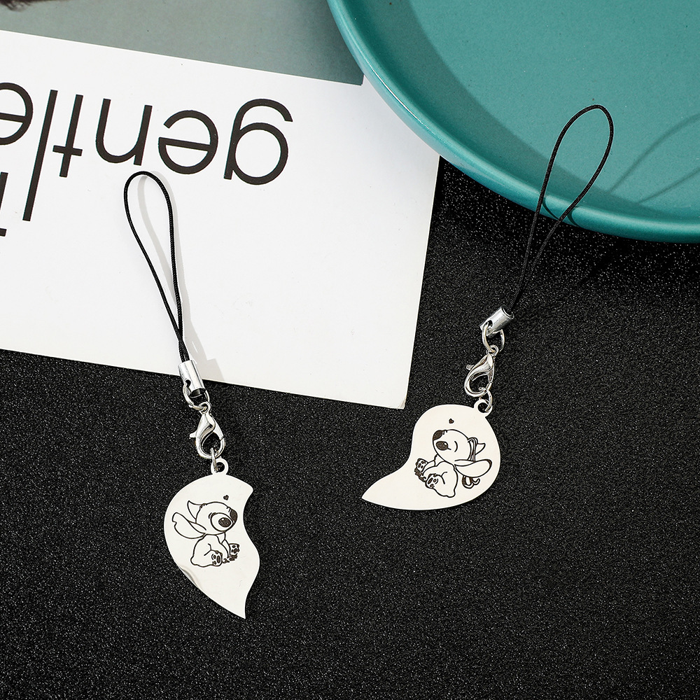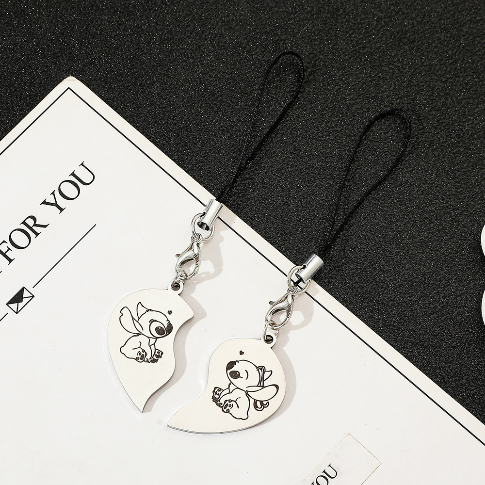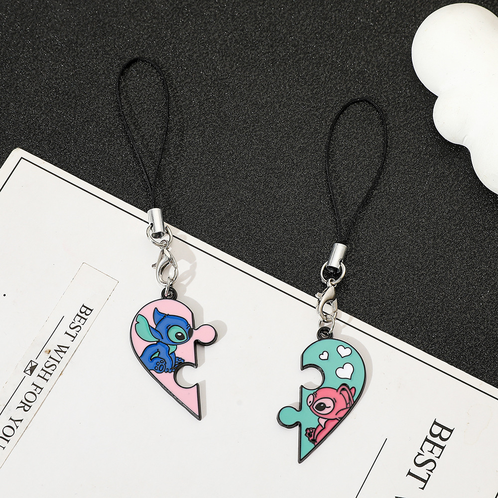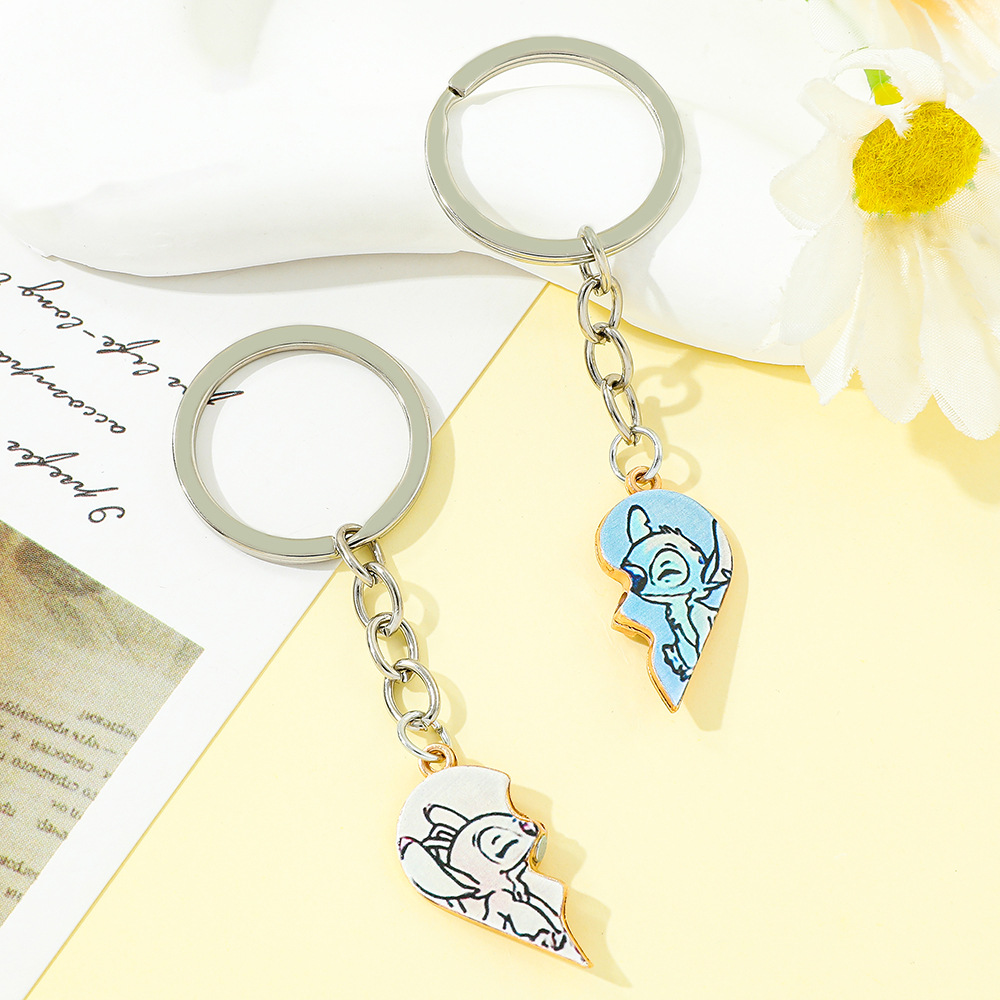 欧米越境スターズトゥース漫画スティッチエンジェルハート型亜鉛合金キーホルダー飾り