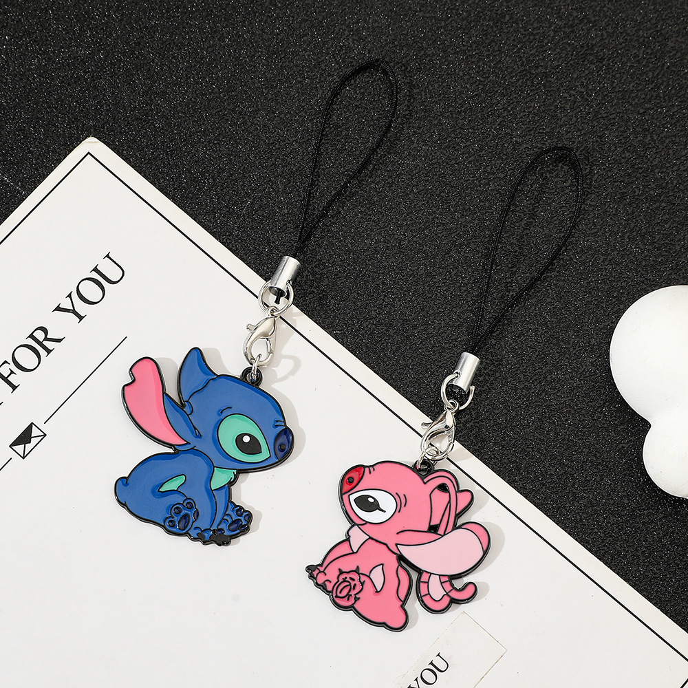 欧米風スターリーベイビーズ漫画スティッチ・エンジェル・ハート柄パッチワークバッグチャーム亜鉛合金キーホルダー
