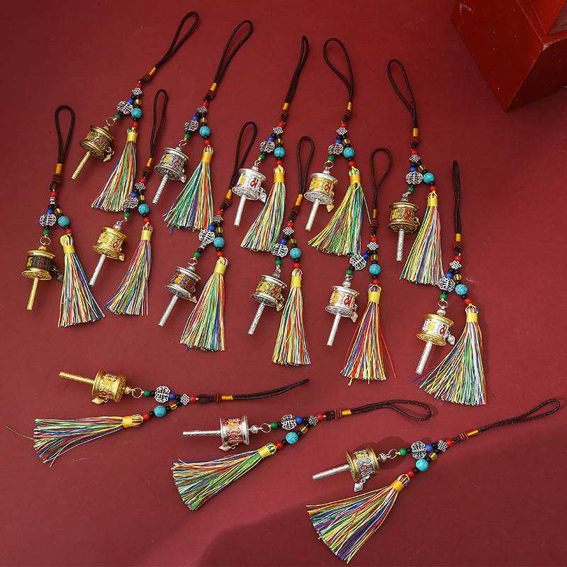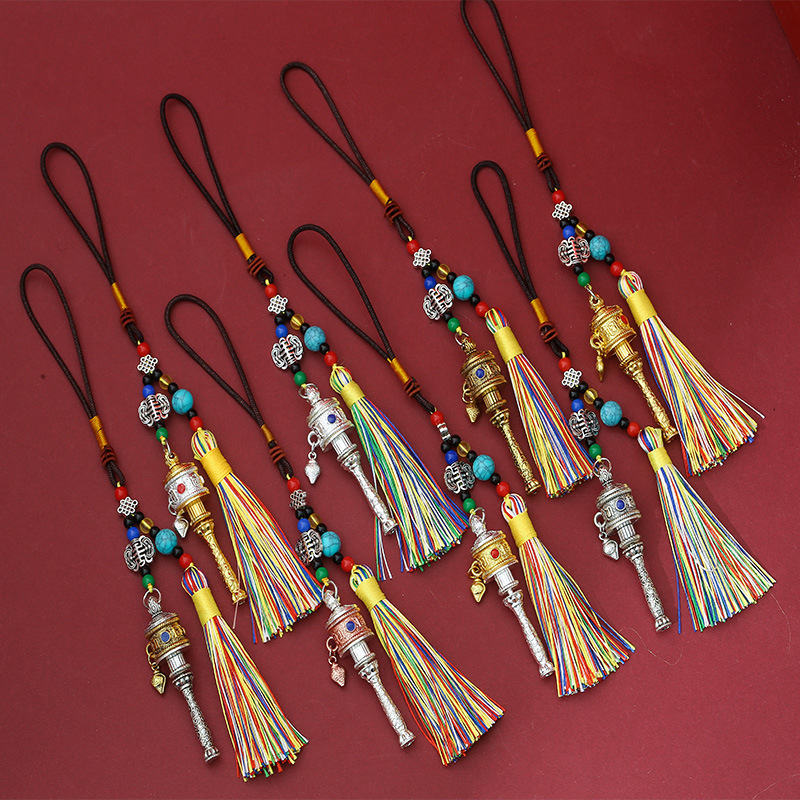 民族風チベット装飾合金製回転式経輪エナメルカラー吊り下げ飾りバッグや車用吊り下げ飾りメーカー直販卸売3c