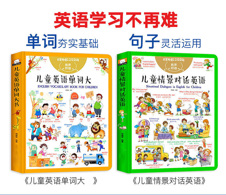 こども英単語ビッグブック 1200単語 1冊,子ども向けシナリオ対話英語1200文 1冊,子どもたちの日常の英語1200文を1冊に