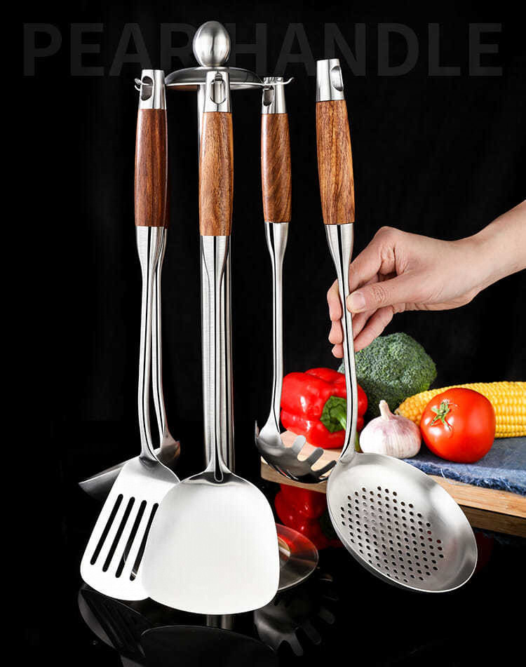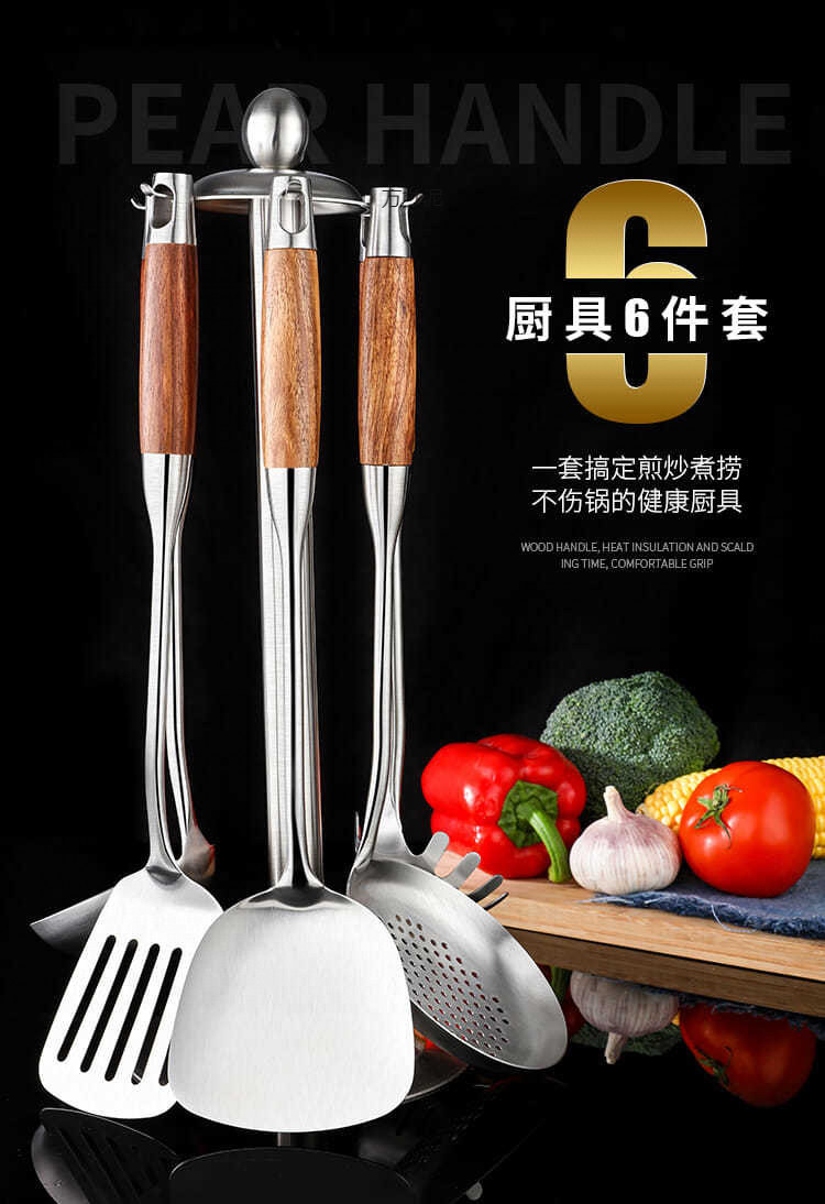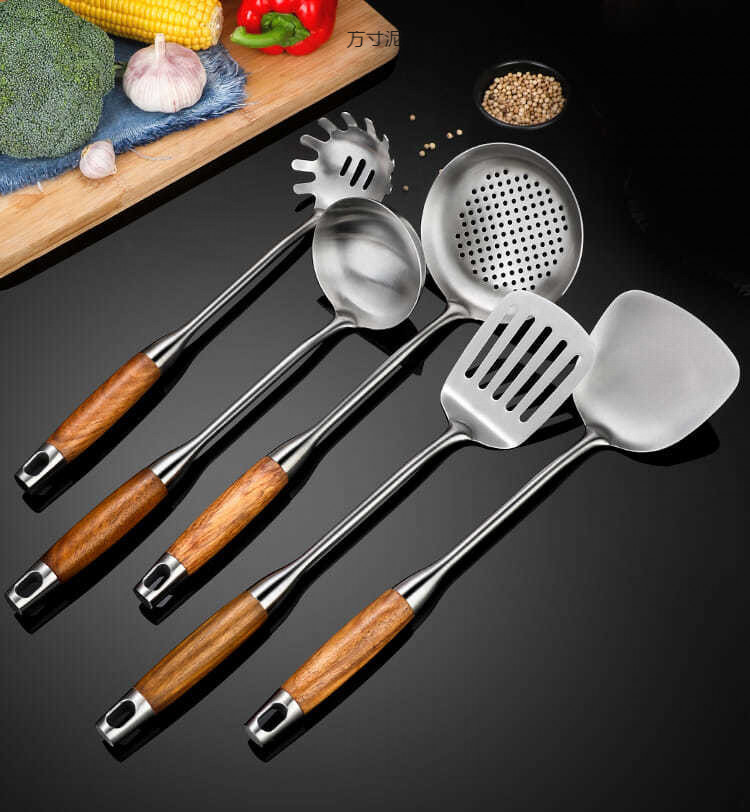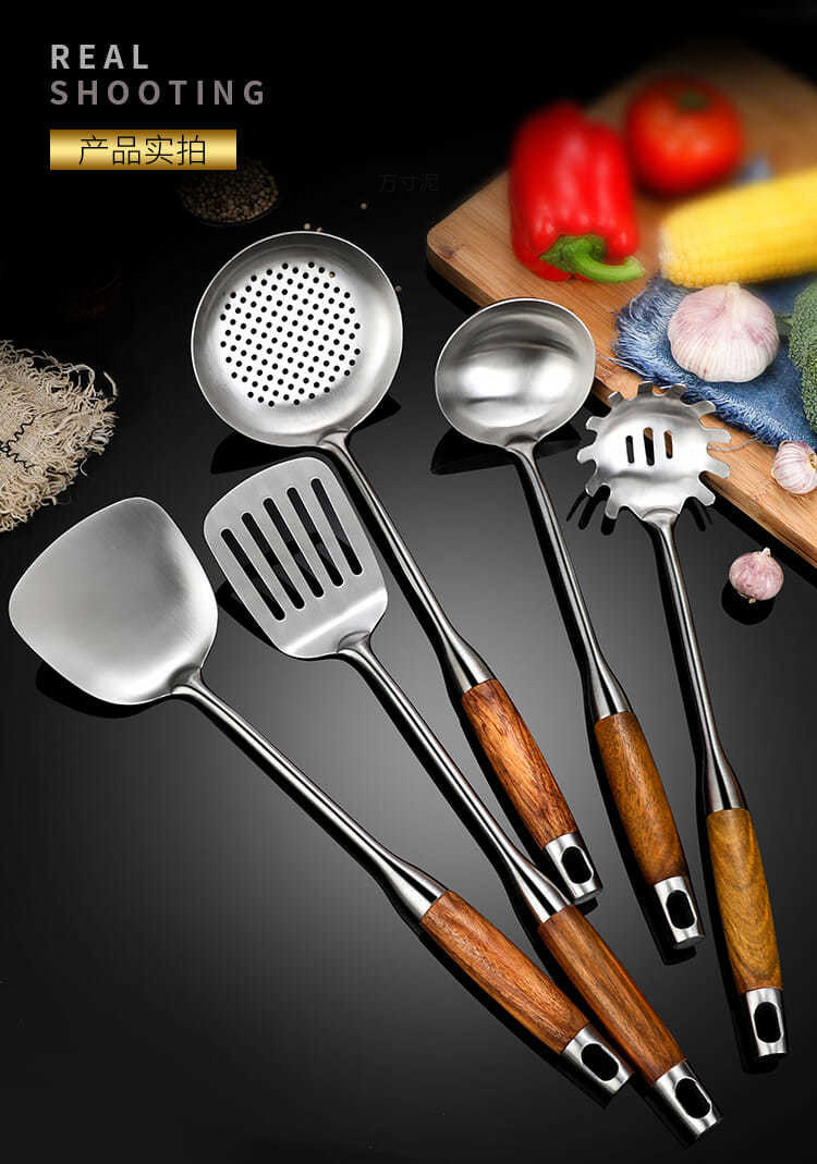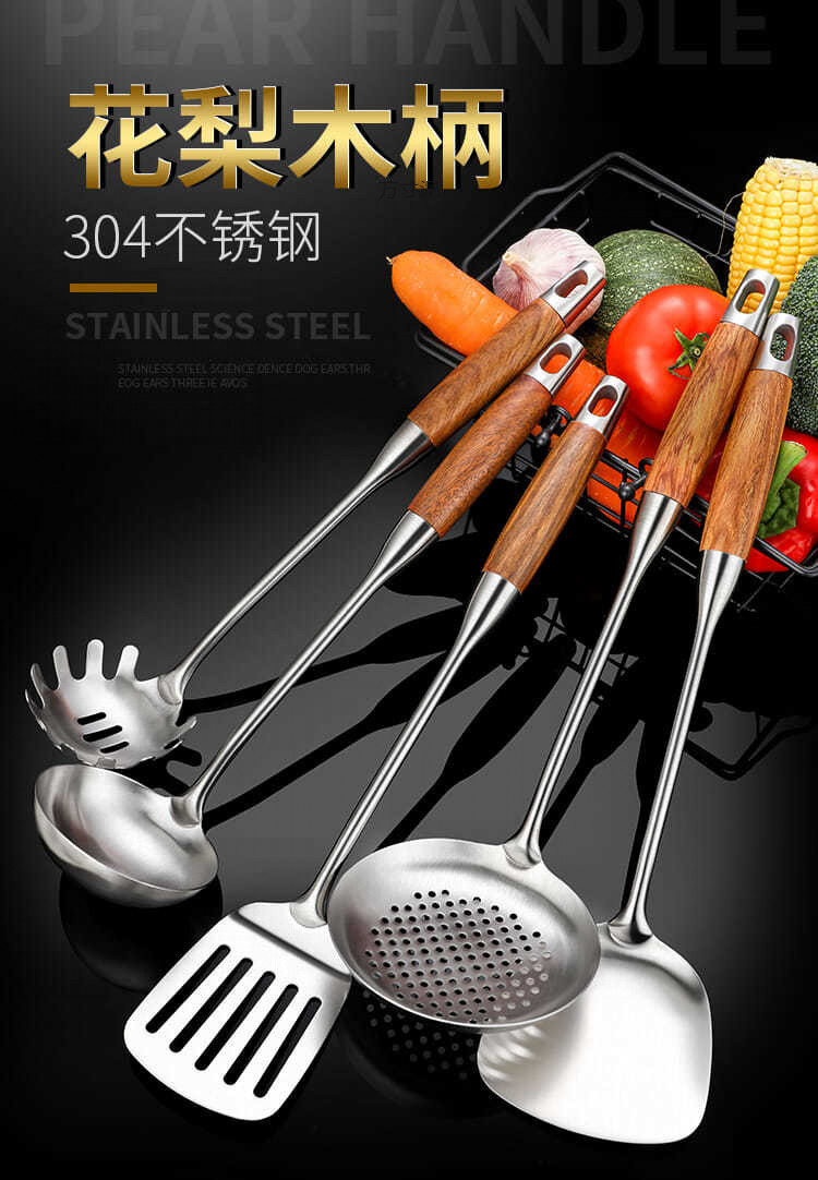 ステンレスの花梨の木の柄の調理器具の台所の鍋のシャベルのシャベルの炒め物のスプーンのスプーンの調理スプーンのシャベルの調理器具のセット