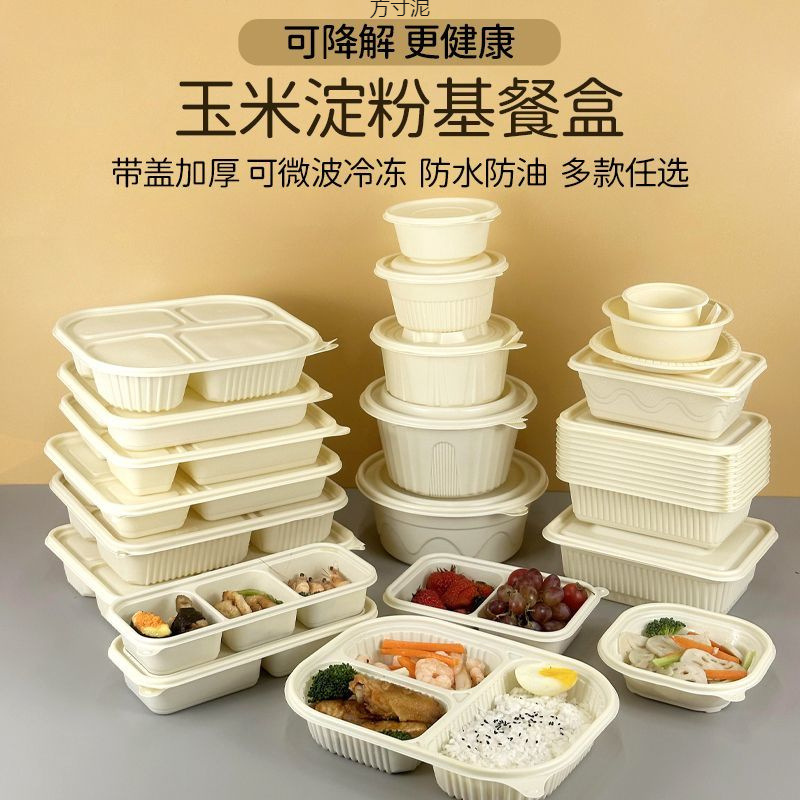 使い捨てランチボックス分解性パッキングボックス長方形弁当箱蓋付き食品級仕切り多格三格五格