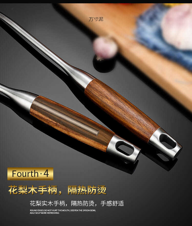 花梨木柄304不锈钢大汤勺长柄勺子家用厨房盛汤粥稀饭炒菜勺厂
